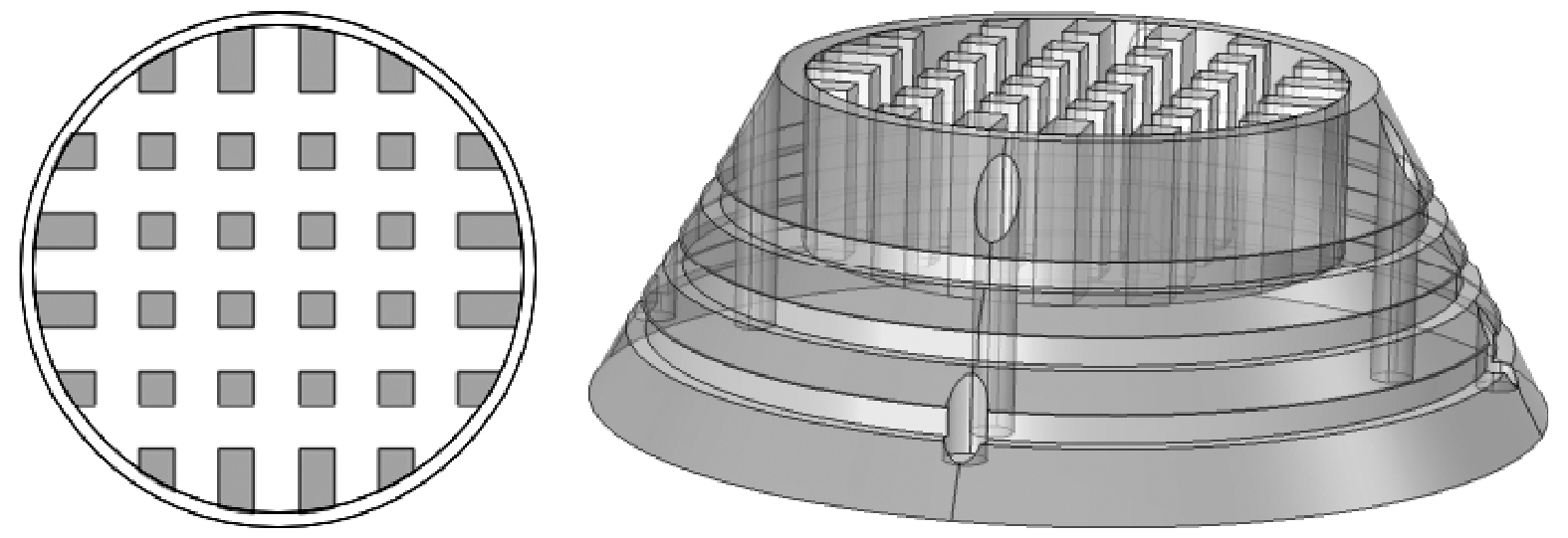 The band gap, localization, and waveguide characteristics of phononic crystal structures offer extensive potential applications in transducer field, particularly for circular-hole phononic crystals, which are extensively utilized in research on performance optimization of transducers due to their straightforward structure and easy fabrication. Nonetheless, studies have revealed that the bandgap width of circular-hole phononic crystal structures is directly proportional to their porosity. Typically, a higher porosity leads to enhanced energy localization of elastic waves. However, high porosity implies a narrower distance between circular holes, greatly reducing the mechanical strength of the structure. The introduction of columnar phononic crystal structures solves the problems of high porosity and strict dimensional accuracy requirements in circular-hole phononic crystal structures, providing a new approach for enhancing the performance of piezoelectric ultrasonic transducers. This study employs cylindrical and acoustic surface structures fabricated on the front and rear cover plates of piezoelectric ultrasonic transducers to manipulate the transmission behavior and pathway of sound waves, thereby achieving effective control over coupled vibrations within the transducer. This approach not only solves the problem of uneven amplitude distribution on the radiation surface due to uneven vibration energy transmission but also markedly enhances the displacement amplitude of the transducer’s radiation surface, ultimately enhancing its operational efficiency. The simulation results elucidate the influences of the configuration of these cylindrical and acoustic surface structures on transducer performance. Experimental findings further validate that these structures can effectively improve the performance of piezoelectric ultrasonic transducers. This study provides systematic design theory support for the engineering calculation and optimization of transducers. -