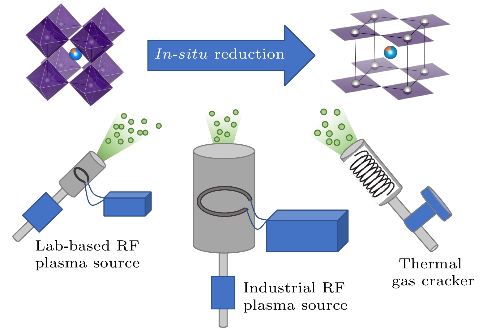 近年来, 无限层镍氧化物薄膜作为首个实现超导电性的镍氧化物体系, 引起研究者广泛关注. 该材料通过将钙钛矿结构前驱体去除顶角氧获得. 传统的CaH2封管还原法虽简单有效, 但属于非原位手段且容易造成表面非晶化, 不适用于表面敏感实验的研究. 为了解决该问题, 本文在超高真空腔体中建立了3种不同的原位原子氢还原方式(科研用射频等离子体裂解源、工业用射频等离子体裂解源和热裂解源), 系统探索各自的最优还原条件, 并比较不同还原方式对薄膜表面形貌和超导转变温度等性质的影响. 多种原位还原方式的优化和对比对于进一步提升无限层镍氧化物的表面质量及超导性能至关重要. 结果表明, 3种原位手段在降低薄膜表面粗糙度方面相比于CaH2还原表现出优势, 工业用射频等离子体裂解源和热裂解源可实现优于CaH2的超导性能. 研究还系统介绍了各还原方式的参数优化结果, 为实现高质量无限层镍氧化物薄膜的可控还原提供了重要参考.Infinite-layer nickelates, obtained by removing the apical oxygen from perovskite precursors, are the first nickelate system to exhibit superconductivity and provide a platform for exploring unconventional superconductivity. Although the traditional CaH2 sealed-tube reduction method is simple and effective, it is an ex-situ process that tends to cause surface contamination or degradation, making it unsuitable for surface-sensitive measurements like angle resolved photoemission spectroscopy (ARPES). To address this issue, we establish three different in-situ atomic hydrogen reduction methods in an ultrahigh vacuum chamber—namely, a lab-based RF plasma cracker, an industrial RF plasma cracker, and a thermal gas cracker. The key parameters including hydrogen flow, RF power or filament temperature, reduction temperature, and timeare comprehensively optimized using each of the above methods. Structural evolution is monitored by X-ray diffraction (XRD), surface morphology is characterized by atomic force microscopy (AFM), and superconducting properties are examined through electrical transport measurements. The results show that all three in-situ methods can achieve reduction and superconducting properties comparable to or better than CaH2 reduction. Moreover, all atomic hydrogen approaches yield lower surface roughness than CaH2 from the same precursor, highlighting their clear advantage in enhancing surface flatness. Notably, the industrial RF plasma source, due to its higher hydrogen production efficiency, enables sufficient reduction under milder conditions, resulting in even smoother surfaces. This study also provides a detailed summary of the parameter optimization for each method, providing valuable guidance for the controlled reduction of high-quality infinite-layer nickelate thin films.