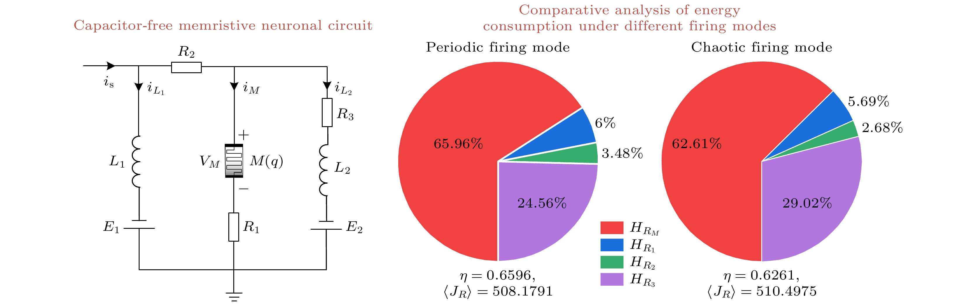 神经形态计算的硬件实现, 正从传统架构转向对生物神经元内在物理机制的更精细模拟. 聚焦于电场-磁场能量交换这一核心过程, 本文提出一种基于荷控忆阻器的无电容嵌入式神经元电路设计方法. 通过构建无量纲动力学方程并采用雅可比矩阵特征值分析, 验证了该模型的稳定性特征. 研究结果表明, 该模型不仅可通过外界刺激、反转电位及离子通道导通性等参数灵活调控神经元放电模式, 还展现出良好的噪声鲁棒性与能量效率. 进一步通过电阻参数优化策略, 使电路能耗得到显著控制. 本文可为发展高集成度、低能耗的下一代神经形态计算电路提供理论支撑与设计参考.