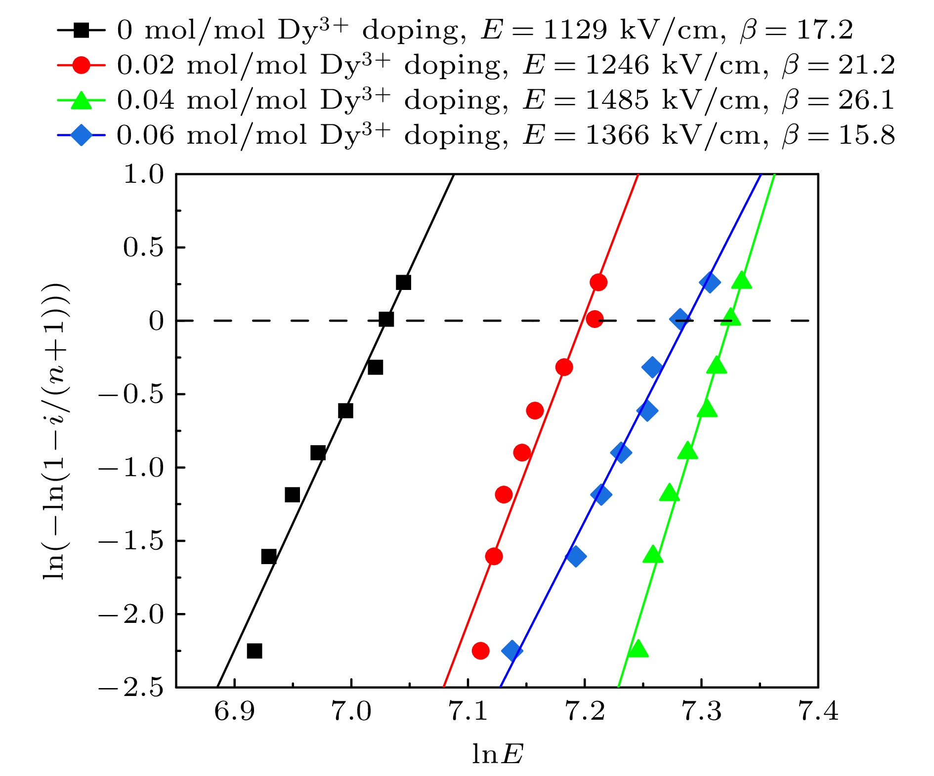 Dy3+ doping (mol/mol)Ba2NaNb5O15