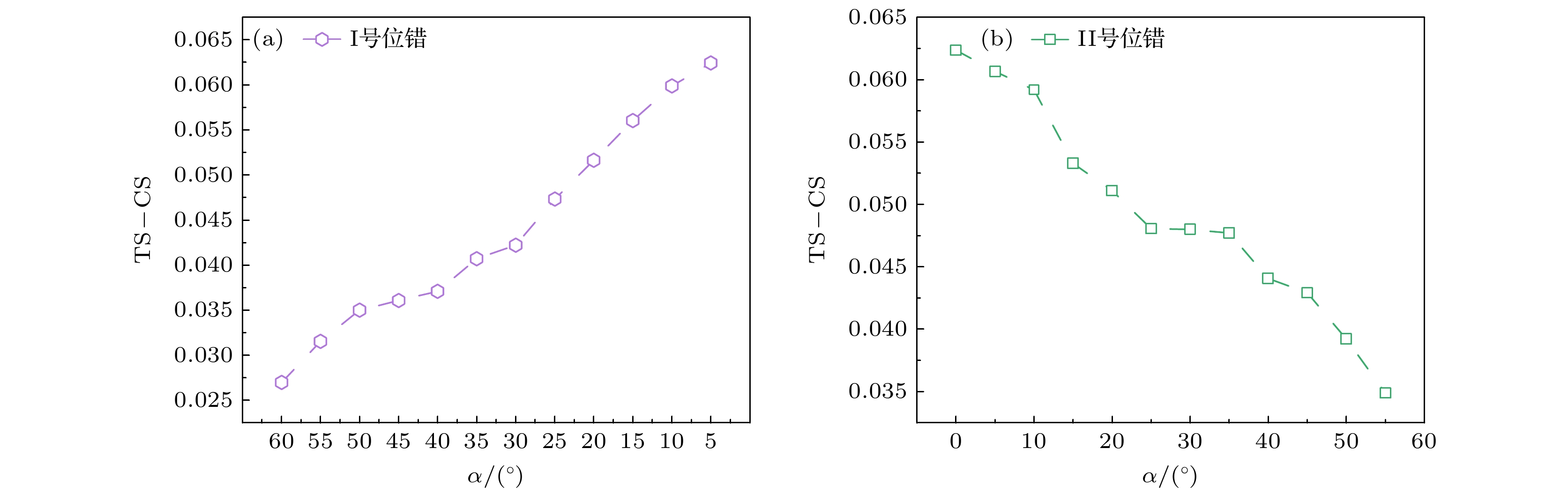 $\theta $/(°)b与Y轴夹角$\alpha $/(°) ${\varphi _1}$/(°) ${\varphi _2}$/(°) Ⅰ号位错