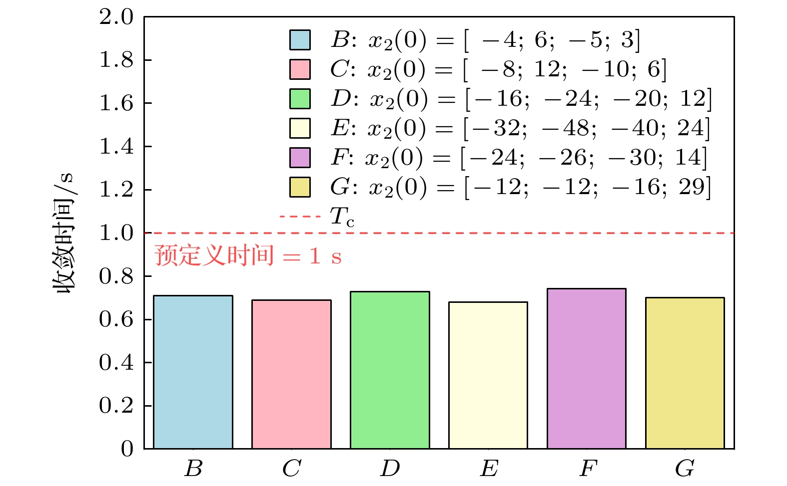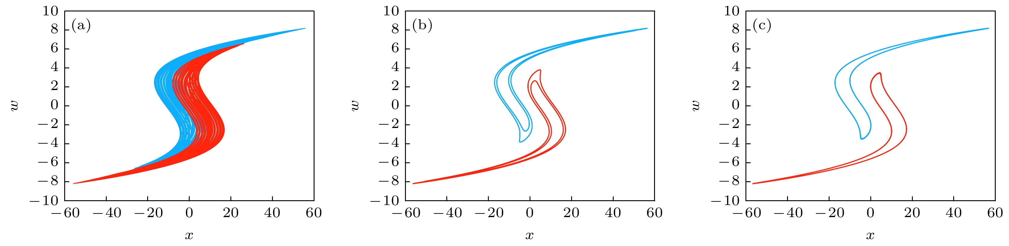 简单忆阻混沌系统的丰富动力学分析与预定义时间同步研究对充分认识系统动力学形成机制以及拓展混沌系统应用潜力有重要意义. 本文提出一种仅含单个非线性项的四维忆阻混沌系统模型, 旨在揭示系统在参数与初始条件变化下的多样动力学行为并实现高效预定义时间同步控制. 基于耗散性分析和Lyapunov指数量化, 结合参数分岔与多稳态研究, 揭示了该系统具有无穷多不稳定平衡点、同构与异构多稳态(点吸引子、周期吸引子与混沌吸引子)分布特征, 并发现通过调节忆阻器内部参数可精准实现信号的幅度控制, 从而为周期信号与混沌信号的有效调幅提供新的模型支撑. 针对该复杂动力学特性, 构建了包含线性与双向幂次非线性衰减项的预定义时间滑模面, 利用Lyapunov稳定性理论推导出误差系统在预设时间内收敛的一种新型的充分条件, 并设计了可调同步时间上界的双阶段滑模控制律. 数值仿真表明该系统能够在预定义时间内完成误差收敛, 且过程无超调或抖振, 具备高精度和强鲁棒性.The rich dynamical analysis and predefined-time synchronization of simple memristive chaotic systems are of great significance in fully understanding the mechanism of dynamics formation and expanding the potential applications of chaotic systems. A four-dimensional memristive chaotic system with only a single nonlinear term is proposed to reveal various dynamic behaviors under the change of parameters and initial conditions, and to realize effective synchronization control. Based on dissipativity analysis and Lyapunov exponent computation, and combined with bifurcation analysis and multi steady state exploration, it is shown that the system possesses an infinite number of unstable equilibrium points and exhibits homogeneous and heterogeneous multistability, including point attractors, periodic attractors, and chaotic attractors. Moreover, it is found that amplitude modulation of the output signals of the system can be precisely achieved by adjusting internal parameters of the memristor, thus providing a theoretical basis for achieving effective amplitude modulation of periodic and chaotic signals. A predefined-time sliding mode surface with linear and bidirectional power-law nonlinear decay terms is constructed to address synchronization. Sufficient conditions for predefined-time convergence of synchronization errors are derived using Lyapunov stability theory, and a double-stage sliding mode controller with an adjustable upper bound on synchronization time is designed. The resulting control law ensures an adjustable synchronization time bound and rapid error suppression under arbitrary disturbances. Numerical simulations further confirm the effectiveness and robustness of the proposed control scheme, indicating that even under external disturbances or significant variations in initial conditions, the error variables can still converge precisely within the predefined time.