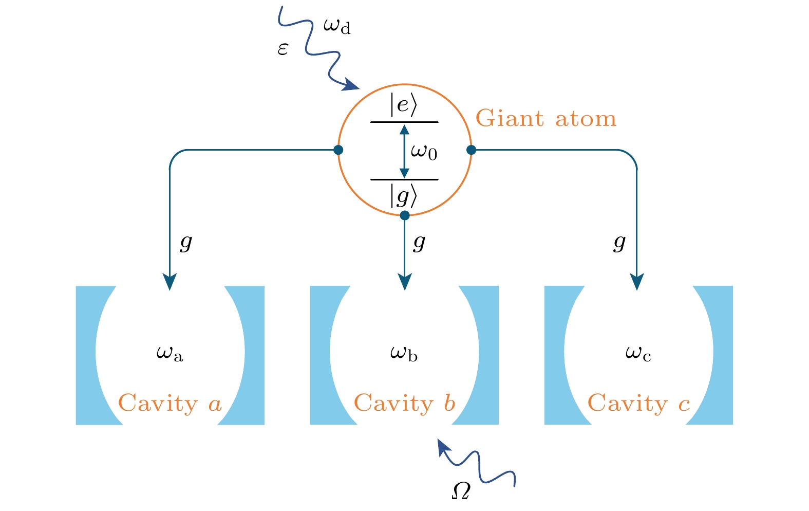 研究了人工巨原子与三个微腔耦合系统中的光子阻塞效应. 首先讨论了弱驱动腔模的情况, 分析了单光子和双光子激发时系统的能级结构和跃迁路径, 研究了系统中光子的统计特性. 其次, 考虑同时驱动人工巨原子和腔模, 探讨了利用量子干涉效应进一步增强光子阻塞. 研究结果表明, 系统的两个腔中出现了对弱驱动具有鲁棒性的光子阻塞效应, 等时二阶关联函数的值为$g^{(2)}(0)\approx 10^{-3.4} $. 另外, 在同时驱动人工巨原子和腔模的情况下, 本研究实现了最佳光子阻塞, 等时二阶关联函数可以达到$g^{(2)}(0)\approx 10^{-6.5} $. 该研究结果可为单光子源的实验实现提供新的可行方案.