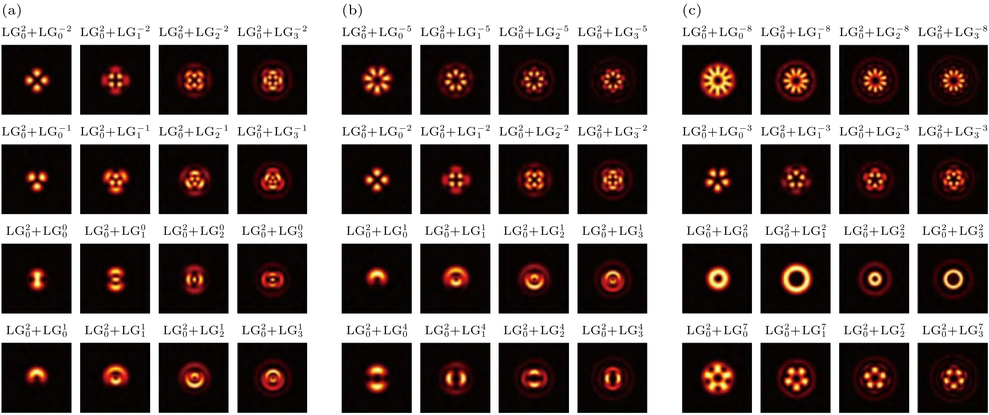 组别 拓扑荷数间隔 叠加OAM模式 Set1 $ \Delta l=1 $ $ \left\{{p}_{2}=0, 1, 2, 3;\right.\left.{l}_{2}=-2, -1, 0, 1\right\} $ Set2 $ \Delta l=3 $ $ \left\{{p}_{2}=0, 1, 2, 3;\right.\left.{l}_{2}=-5, -2, 1, 4\right\} $ Set3 $ \Delta l=5 $ $ \left\{{p}_{2}=0, 1, 2, 3;\right.\left.{l}_{2}=-8, -3, 2, 7\right\} $ 表 2 硬件平台配置和模型参数