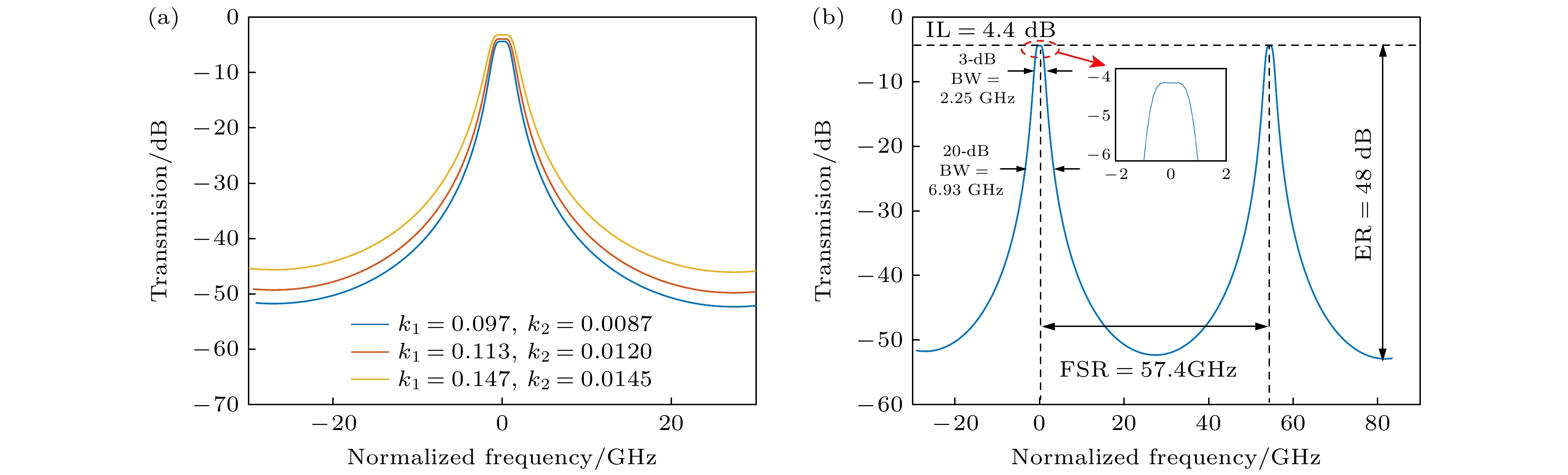 Table 1. Parameters and performance of the flat-top bandpass filter based on CROW structure.