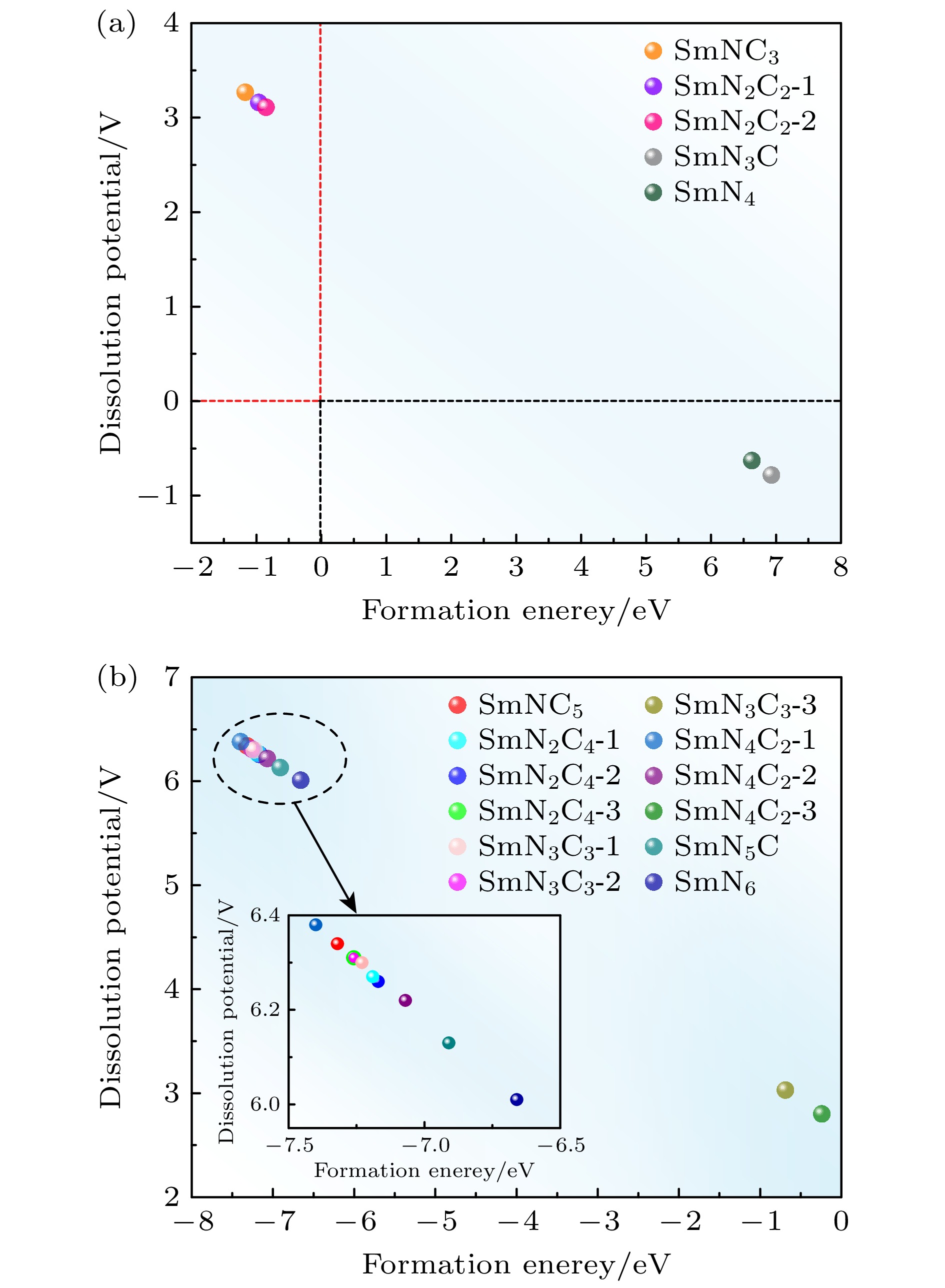 锂-氧电池虽有超高的理论能量密度, 但实际应用仍面临氧化反应动力学缓慢、充电过电位高等严峻问题. 大多数应用于锂-氧电池的单原子催化剂主要是基于过渡金属不饱和配位的d轨道, 而稀土元素Sm有丰富的4f轨道电子. 最近研究表明Sm单原子催化剂在锂-硫电池中能提升多硫化物的转化, 并在全电池实验中实现超稳定的循环性能. 因此, 本研究设计并优化了17种Sm单原子催化剂SmNxCy (x+ y = 4, 6), 通过稳定性和催化活性筛选出SmN3C3-1催化剂应用于锂-氧电池. 通过研究对Li2O2分子的催化氧化, 发现Li2O2分子氧化的速率决定步为第2步, 充电过电位为0.52 V. 机理分析表明SmN3C3-1催化剂的d-f-p轨道杂化消除了对Sm原子4f轨道的屏蔽, 促进了界面电荷转移, 从而增强了对Li2O2分子的催化氧化. 本工作为稀土单原子催化剂在锂-氧电池中的应用提供了新视角.Lithium-oxygen batteries (LOBs) are renowned for their ultrahigh theoretical energy densities. However, their practical applications are significantly limited by sluggish oxidation kinetics and elevated charge overpotentials. Most single-atom catalysts (SACs) utilized in LOBs are predominantly based on transition metals, which feature unsaturated d-orbital coordination. In contrast, the rare-earth element samarium (Sm) possesses a rich array of 4f-orbital electrons. Recent studies have demonstrated that Sm SACs can effectively enhance the conversion of polysulfides in lithium-sulfur batteries (LSBs) and achieve remarkable cycling stability in full-cell experiments. Inspired by the work, we systematically design and optimize 17 configurations of Sm SACs for LOBs by using first-principles calculations, which are denoted as SmNxCy (x + y = 4 or 6). Through comprehensive screening for stability and catalytic activity, we identify the SmN3C3-1 catalyst as an optimal candidate for LOBs. The catalytic mechanism of the SmN3C3-1 SAC over the oxygen evolution reaction of the Li2O2 molecule is investigated. The Gibbs free energy of the two-electron dissociation process indicates that the second step of the reaction is the rate-determining step (RDS). At the equilibrium potential, the charge overpotential is 0.52 V. Furthermore, mechanistic analysis reveals that the d-f-p orbital hybridization in SmN3C3-1 effectivelyreduces the shielding effect on the Sm 4f orbitals, facilitates interfacial charge transfer, and significantly improves the catalytic performance of the Li2O2 oxidation. This study provides novel insights into the potential of rare-earth-based SACs for improving the performance of LOBs.
