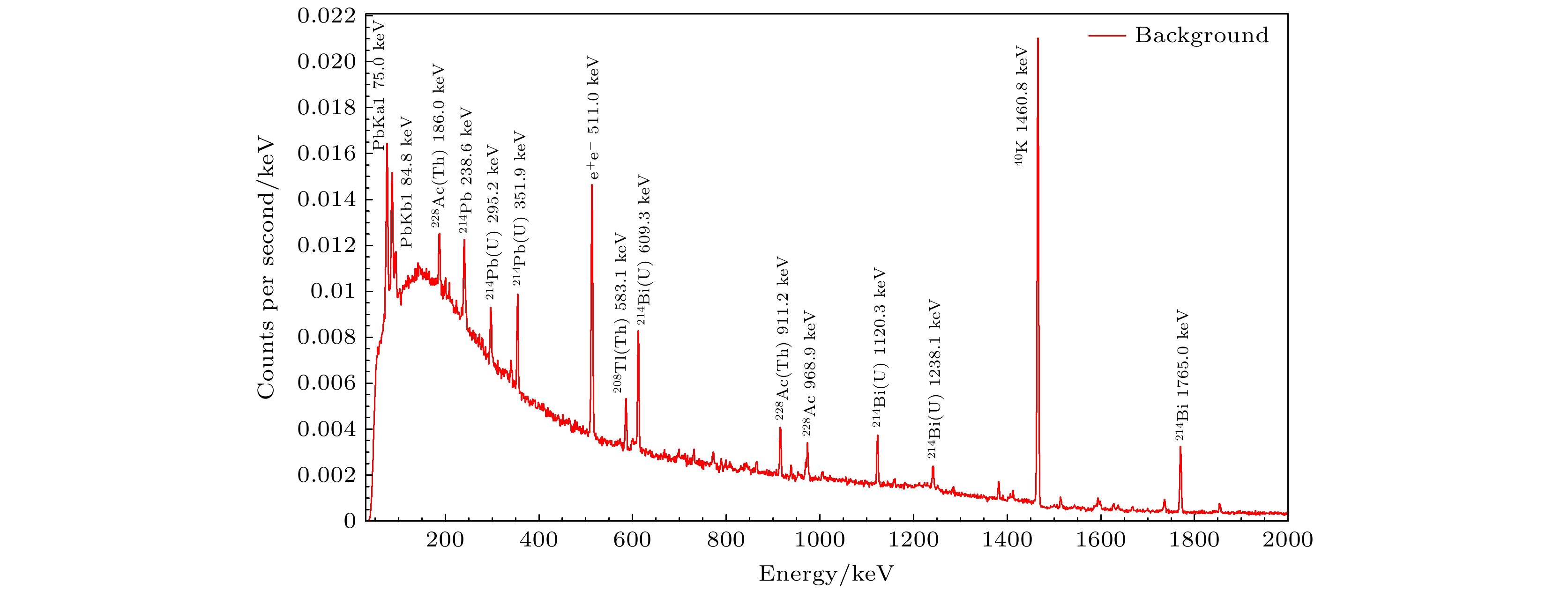 Fig. 4.  Natural background energy spectra after shielding (93 h)