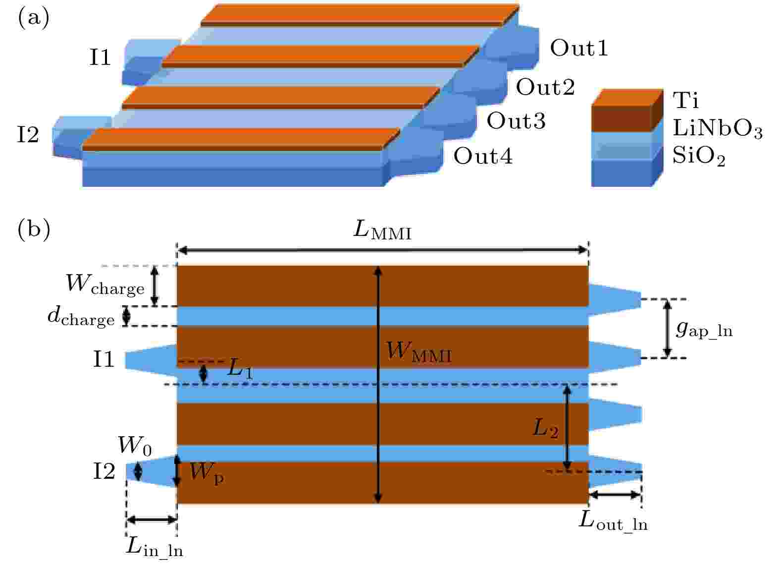 90°光混频器是无线相干光通信系统接收端的关键器件, 在提升接收端灵敏度和抗干扰能力方面发挥着重要作用. 传统的90°光混频器存在对精度要求高、体积大、受限于模式失配、偏振敏感和功能单一等缺点. 为解决上述问题且进一步实现器件的多功能化, 在铌酸锂平台基于多模干涉(multimode Interference, MMI)结构, 设计了兼具90°光混频和模式分离功能的多功能集成器件. 该器件在功能上具备良好的可扩展性, 在性能上均优于传统结构, 具有低损耗、高精度和宽带宽的特点, 并通过容差分析验证了器件在较大工艺误差范围内仍能保持优异的性能, 展现了较高的工艺容差性和可靠性. 该器件可同时应用于大规模集成光学中, 为高性能片上光通信系统提供了新技术.