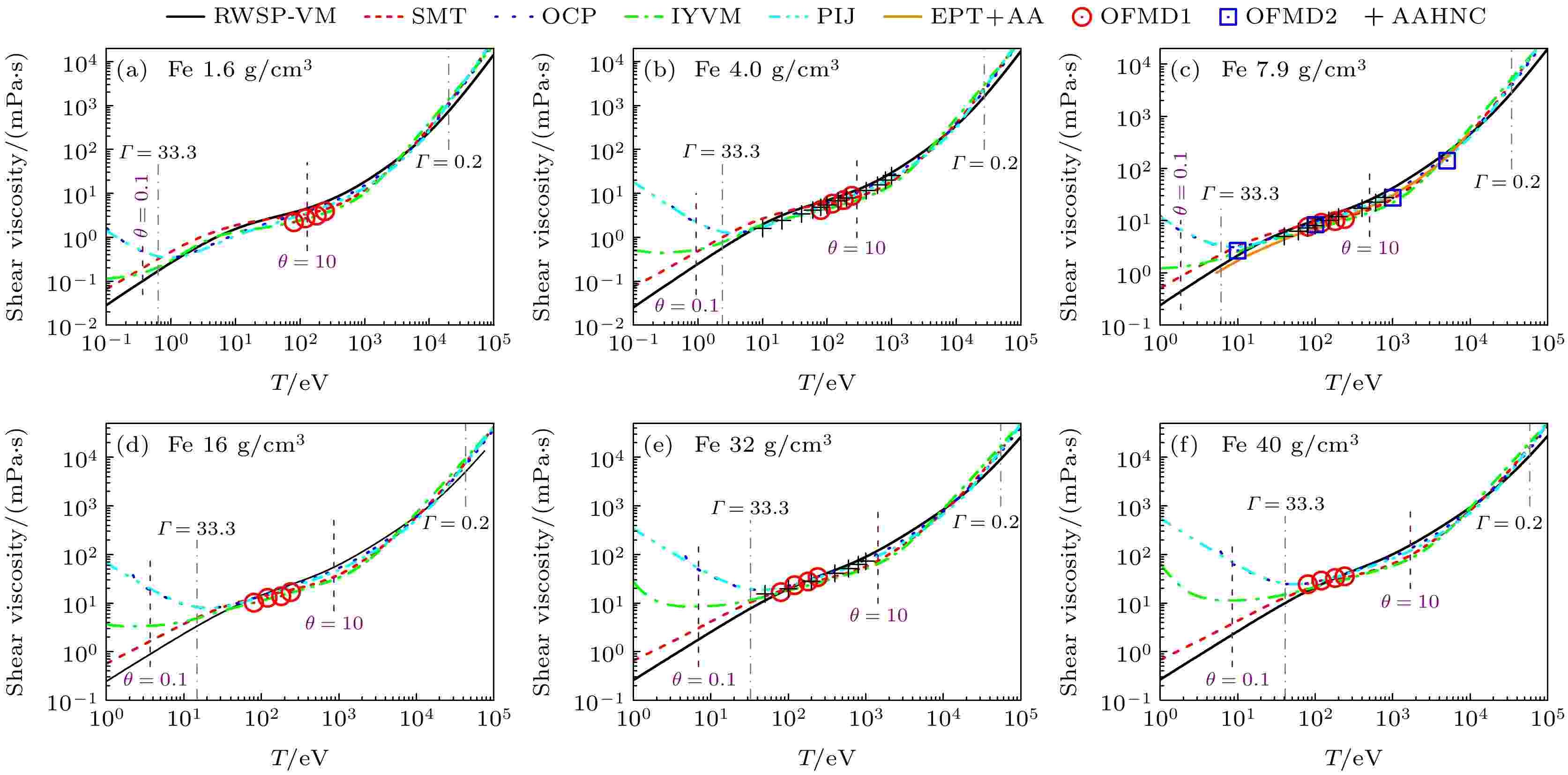 温稠密和热稠密极端条件下的物质黏性在诸多场景有着重要应用, 例如: 惯性约束聚变靶丸设计、天体结构演化研究、极端条件下界面不稳定性和混合发展规律研究等. 由于黏性实验技术能够达到的温压范围非常有限, 因而, 极端条件下物质黏性数据的获取方式主要是通过理论计算. 本文阐述了计算温稠密和热稠密极端条件下物质黏性的多种理论方法, 包括以量子分子动力学模拟(QMD)为代表的数值模拟方法和以随机游走屏蔽势黏性模型(RWSP-VM)为代表的解析公式. 通过评估从低原子序数到高原子序数的多种单质(H, C, Al, Fe, Ge, W, U)的黏性数据, 讨论了各种方法的适用条件, 评估了各种解析公式的可靠性和适用范围. 可以看到, 数值模拟方法获得的数据量以及覆盖范围仍然有限, 不同的数值模拟方法之间还存在一定分歧, 解析公式仍然是快速获取大量黏性数据的可靠方式. 基于物理建模和模拟数据的拟合公式, 例如单质等离子体(OCP)模型、集成的Yukawa黏性模型(IYVM)等, 兼顾了模拟数据的精度和解析计算的效率. 基于物理建模的RWSP-VM, 不依赖于模拟数据, 却在较宽温压范围内具有与模拟数据相当的精度, 是获取温稠密和热稠密物质黏性数据的高效方法. 本文数据集可在https://doi.org/10.57760/sciencedb.j00213.00180 访问获取.