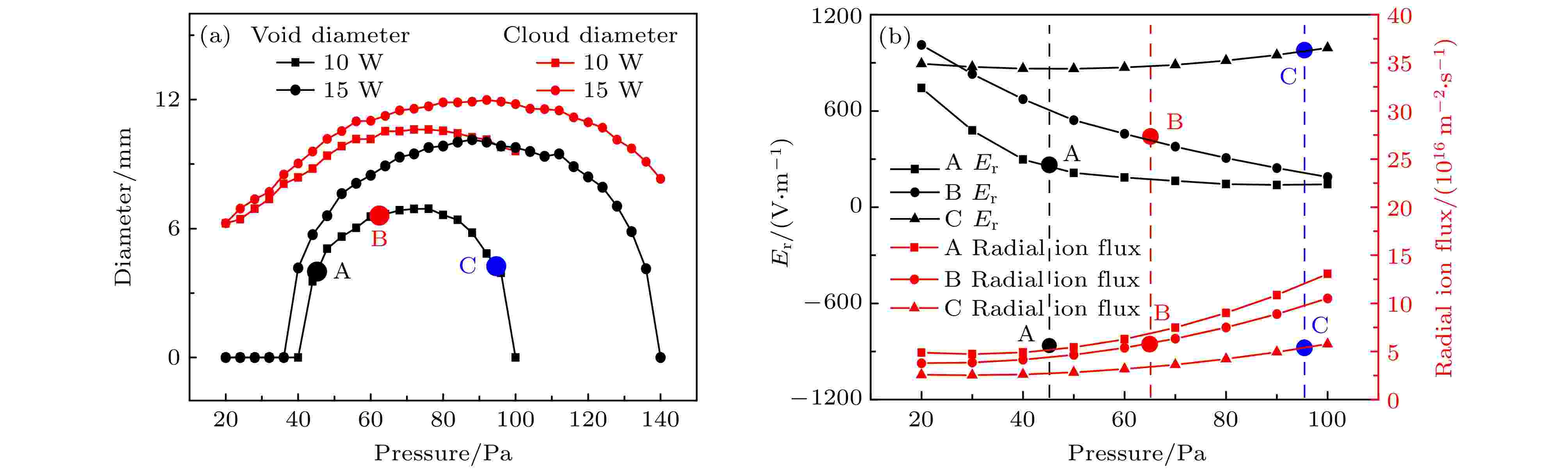 在射频容性耦合尘埃等离子体放电中, 下极板凹槽通过影响鞘层里的电势分布, 进而对尘埃颗粒的集体行为产生显著影响. 实验中通过在腔室内撒入微米级直径的尘埃颗粒, 观察到其在下电极凹槽势阱上方分层出现, 整体呈“碗状”云分布. 尘埃云的体积大小随射频功率和放电气压的变化而变化. 尘埃空洞在每层尘埃颗粒的中心出现, 其直径大小和变化受尘埃颗粒数量、射频功率和放电气压影响. 此外, 基于流体模型和尘埃粒子模型建立混合模型, 模拟发现尘埃颗粒的集体行为主要由其所受的轴向合力(考虑轴向电场力、离子拖拽力和重力)和径向合力(考虑径向电场力和离子拖拽力)决定. 实验发现, 通过在射频电极施加负直流偏压, 尘埃颗粒悬浮高度先增大后减小, 悬浮高度的变化能够较直观地反映等离子体放电从α-γ模式的转变.