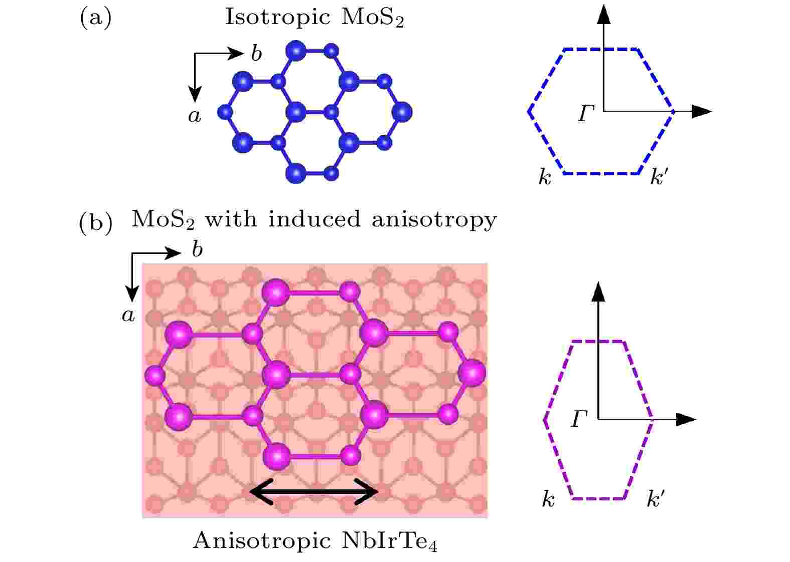 二维材料的发光特性与各向异性构成了微纳偏振发光器件实现与性能优化的物理基础. 然而, 并非所有天然二维材料体系同时具备强本征发光与强各向异性, 这在很大程度上限制了其在偏振可控发光器件中的应用潜力. 针对这一问题, 本研究基于范德瓦耳斯工程策略, 构建了由单层MoS2与低对称性NbIrTe4组成的异质结, 从而实现了高效发光特性与强各向异性响应的协同耦合. 角分辨偏振光致发光测试结果表明, NbIrTe4中固有的各向异性势场能够有效地改变单层MoS2的面内晶格对称性, 诱导其光致发光过程呈现明显的偏振依赖性, 并显著地提升激子的各向异性辐射强度. 本研究不仅揭示了范德瓦耳斯异质结中发光各向异性产生的微观物理机制, 还为新一代高性能偏振发光器件的结构设计与性能调控提供了可行的理论指导与实验依据.