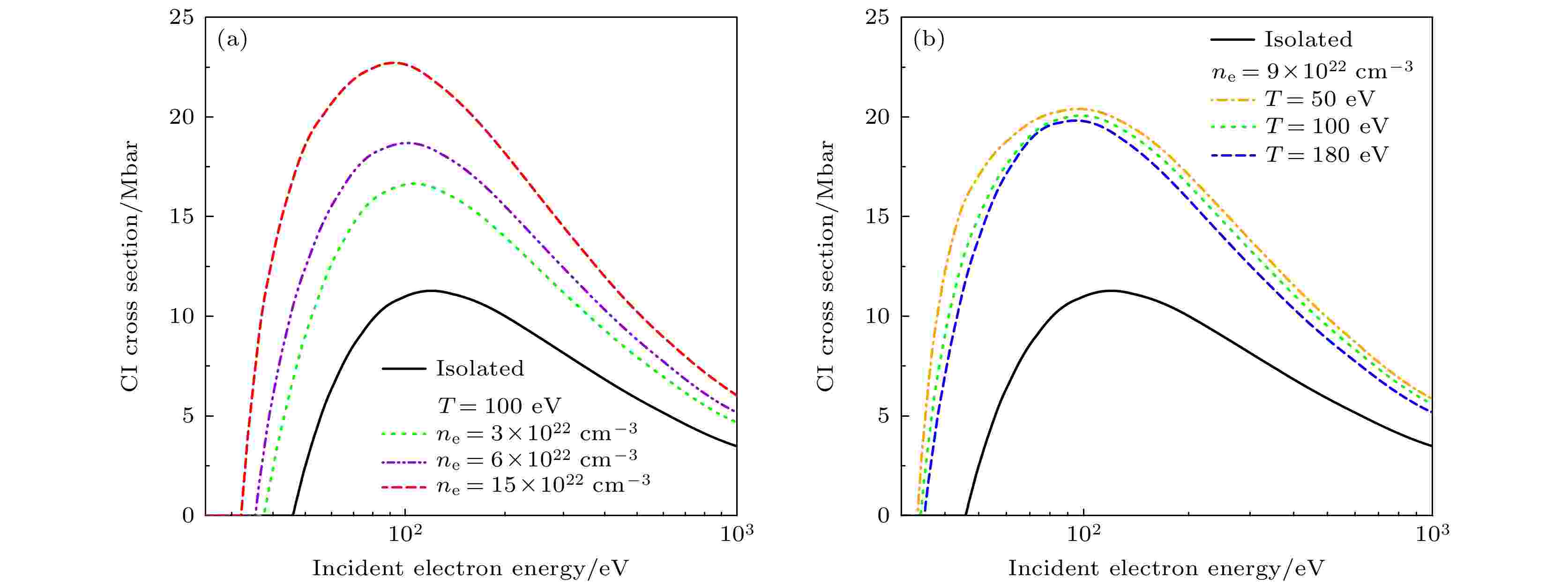 太阳辐射层与对流层边界区域($ T\approx180$ eV, $ n_{\mathrm{e}}\approx 9\times10^{22}\;{\rm{cm}}^{-3}$)是太阳内部能量传输方式从辐射主导向对流主导转变的关键界面, 也是研究高温稠密等离子体物理的天然实验室. 这一区域的物理特性决定了恒星演化模型的可靠性与能量传输机制的稳定性, 特别是高温稠密等离子体中强烈的碰撞电离会改变电子数密度分布, 进而影响能量的输运过程. 本文发展了一种耦合等离子体环境效应来计算原子结构的新方法: 通过将计算原子结构的Flexible Atomic Code (FAC)与超网链(hypernetted-chain, HNC)近似相结合, 在原子波函数计算中引入电子-电子、电子-离子关联函数来考虑等离子体中屏蔽效应, 系统研究了极端条件下电子碰撞电离的物理机制. 基于扭曲波近似的计算表明, 考虑等离子体环境效应时, 碳、氮和氧元素的电子碰撞电离截面较自由原子模型显著增强, 同时电离阈值出现明显下降的现象. 研究发现这种增强效应主要源于离子间强耦合导致的原子势场重叠和自由电子屏蔽引起的束缚态能级移动. 本研究直接将离子结构引入电子结构计算的哈密顿量中, 所获得的电离参数可直接用于改进太阳内部辐射输运模型, 为惯性约束聚变等极端条件等离子体研究提供了理论支持.