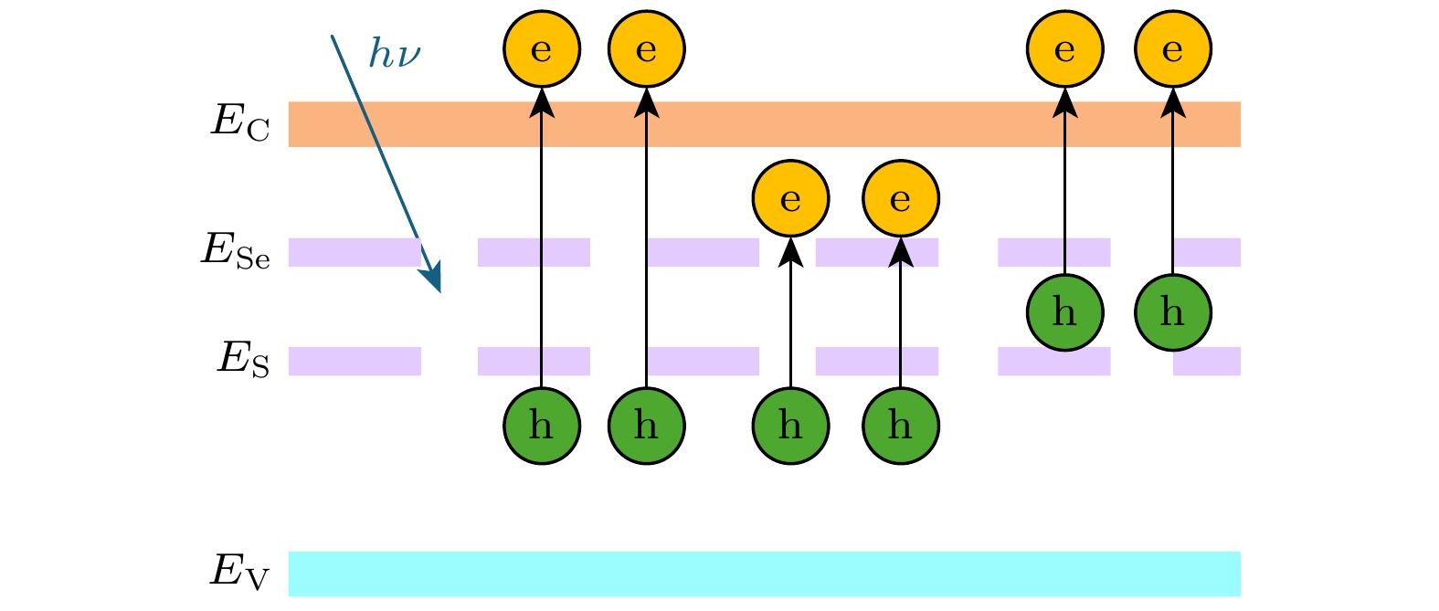 In order to provide more accurate theoretical guidance for improving photoelectric properties of chalcogens doped silicon, the lattice structure, stability, band structure, density of state and optical properties of (S, Se) co-doped silicon are systematically investigated based on the first principles, and the related properties are compared with those of S-doped and Se-doped silicon. The calculated results show that the photoelectric characteristics of S-doped Si and Se-doped Si are extremely similar to each other, with a new impurity band appearing in their bandgap. This new impurity band primarily results from the contributions of the 3s state electrons of S and the 4s state electrons of Se, promoting the absorption of low-energy photons and increasing the optical absorptivity of doped Si in the near infrared region. Compared with monocrystalline silicon, the S-doped Si and Se-doped Si have the optical absorption spectra, each with a new peak at 0.6 eV, which is caused by the transition of electrons from the impurity band to the conduction band. The (S, Se) co-doped Si exhibits good stability at operating temperature, and two impurity bands appear between the valence band and conduction band, which are formed by electrons from the 3s state of S and the 4s state of Se, respectively. The optical absorptivity of (S, Se) co-doped Si is greatly improved in the low energy region compared with that of single doped Si, with a new absorption peak appearing at 0.65 eV, similar to the formation observed in singly doped Si. However, due to the indirect transition process between two impurity energy bands, the absorption peak of (S, Se) co-doped Si is larger in the low energy region. Compared with S-doped silicon and Se-doped silicon with the same concentration, the (S, Se) co-doped Si has optical absorptivity that is significantly improved in the range from 0.81 eV to 1.06 eV. This study provides theoretical guidance for applying the (S, Se) co-doped Si to the field of photoelectron such as infrared photodetectors and solar cells.