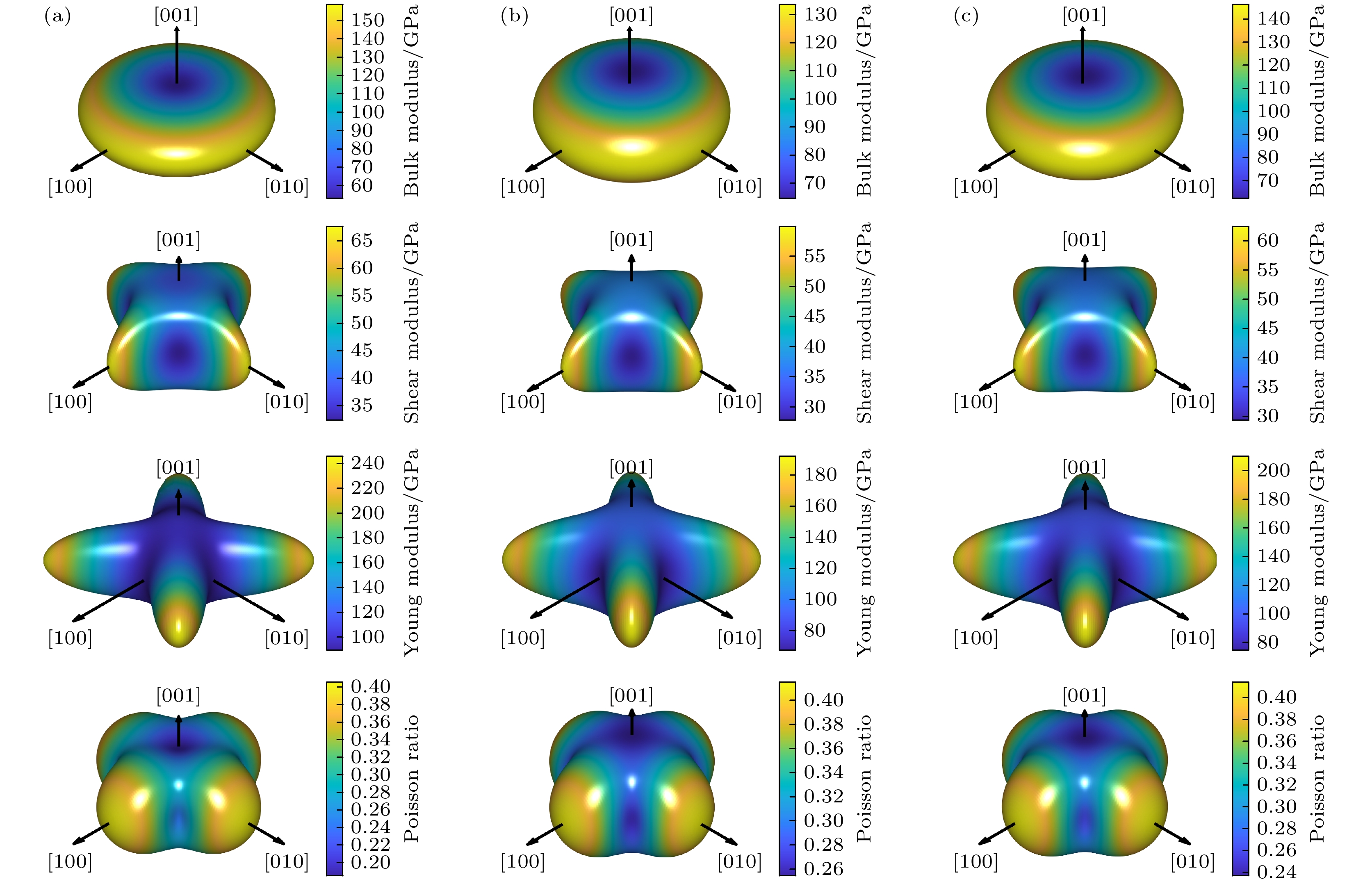 Ternary layered nitrides have received widespread attention due to their unique electrical, optical and optoelectronic properties, which are promising for the fabrication of low-cost and high-efficiency optoelectronic materials, solar cell materials and photocatalysts. Although there is a lack of experimental reports on BaTiN2 so far, BaZrN2 and BaHfN2 have been synthesized experimentally by solid state methods. However, their optical and electrical transport properties have not been investigated systematically. This work is to systematically investigates the mechanical, electronic, optical absorption, carrier transport, and dielectric response properties of BaMN2 (M = Ti, Zr, Hf) nitrides through first-principles calculations based on density functional theory. Due to the quasi-two-dimensional layered arrangement of [MN2]2– slabs, the ionic bonds between Ba2+ and N3–, and the weak interactions between the slabs, the deformation along this direction is most likely to occur under the action of external stress. BaMN2 nitrides exhibit significant anisotropic physical properties. Firstly, the mechanical properties of BaMN2, such as bulk modulus, shear modulus, Young’s modulus, and Poisson’s ratio, show prominent anisotropy. The lower modulus, higher Poisson’s ratios and Pugh’s modulus ratios indicate good flexibility of the BaMN2 nitrides. In addition, BaMN2 has indirect bandgap values (1.75–2.25 eV) within the visible-light energy range, which meets the basic requirement for the band gap of a photocatalyst for water splitting (greater than 1.23 eV). Moreover, BaMN2 has suitable band-edge positions. The appropriate bandgap values and band-edge positions indicate their broad application prospects in the absorber layer of solar cells and photocatalytic water decomposition. Due to the significant difference in the effective mass of its charge carriers between different directions, BaMN2 exhibits ultrahigh anisotropic carrier mobility (on the order of 103 cm2⋅s–1⋅v–1) and lower exciton binding energy. At the same time, there are significant differences in atomic arrangement and bonding interactions between the in-plane direction and out of plane direction, resulting in high anisotropic visible-light absorption coefficient (on the order of 105 cm–1) in the low energy region. In contrast, the increase of the opportunity for electrons to transition from occupied to unoccupied states leads to more complex light absorption and relatively reduced anisotropy in higher energy region. Furthermore, the special layered structure has lower polarizability and higher vibration frequency along the vertical direction perpendicular to the [MN2]2– layers, rendering BaMN2 nitrides show high dielectric constants. These excellent anisotropic mechanical, optoelectronic, and transport properties allow BaMN2 layered nitrides to be used as promising semiconductor materials in the fields of optoelectronics, photovoltaics, and photocatalysis.