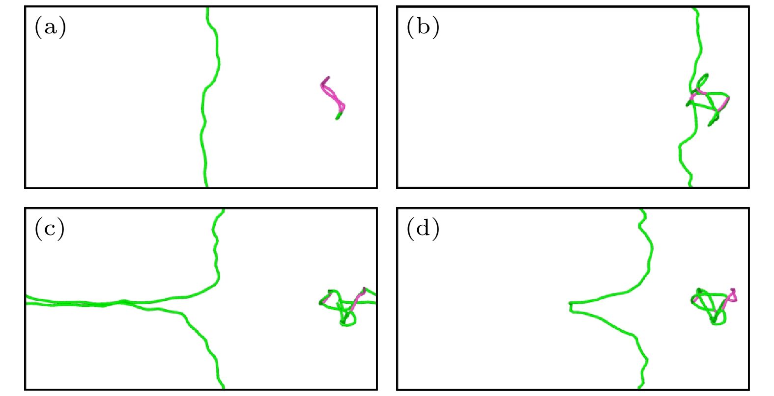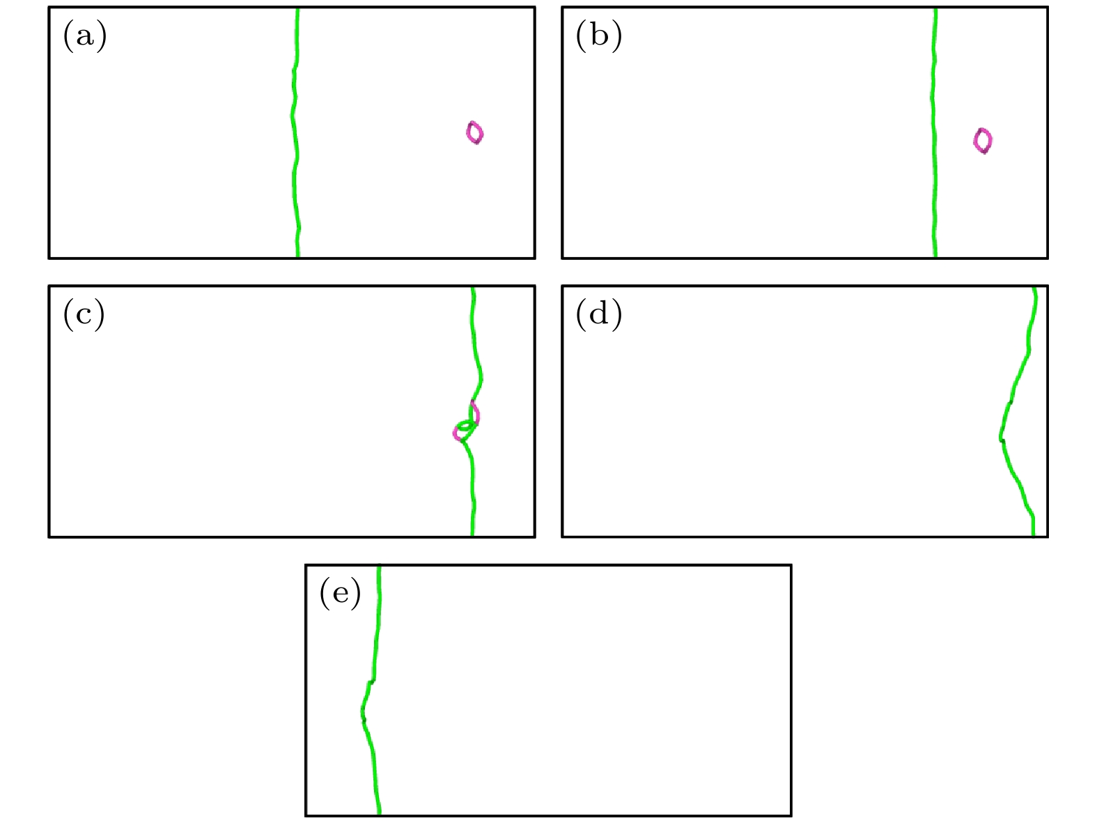 The motion of edge dislocations and the interaction between edge dislocations and dislocation loops in pure V and TiVTa alloy are simulated in this work, with the aim to reveal the influences of the existence of \begin{document}$ \left\langle {111} \right\rangle $\end{document} dislocation loops, which are dominant in pure V, and \begin{document}$ \left\langle {100} \right\rangle $\end{document} dislocation loops, which are dominant in TiVTa alloy, on the irradiation properties of materials and the differences between the irradiation properties influenced by the two types of dislocation loops. The edge dislocations and \begin{document}$ \left\langle {100} \right\rangle $\end{document} loops and \begin{document}$ \left\langle {111} \right\rangle $\end{document} loops with different sizes are introduced into pure V and TiVTa alloy by using molecular dynamics simulation technology. The effects of loop type, loop size, and temperature on the interaction between edge dislocations and dislocation loops in pure V and TiVTa alloy are compared with each other and analyzed. The differences in interaction between dislocations and dislocation loops are summarized, and the reasons are revealed. The simulation results of edge dislocation motion reveal that the velocity of edge dislocations in the pure V decreases with temperature increasing, while the velocity of edge dislocations in the TiVTa alloy shows no significant relation to temperature. This is due to phonon-drag mechanism controlling the motion of edge dislocations in the pure V. In the TiVTa alloy, due to inevitable local chemical fluctuations, the phonon-drag mechanism and the nanoscale segment detrapping mechanism simultaneously control the motion of edge dislocations. The simulation results of the interaction between edge dislocations and dislocation loops show that there are two kinds of interaction mechanisms between dislocations and loops in pure V and TiVTa alloy: for small dislocation loops, dislocations tend to absorb the loops and continue to move; for large dislocation loops, dislocations tend to go through the loops and then move forward. With the size of dislocation loop increasing, the stress required for dislocations to detach from the dislocation loops also increases. With the increase of temperature, the stress required for dislocations to detach from the dislocation loops decreases. This is because the larger the size of the loops, the larger the contact area between dislocations and loops, and the greater the obstacle presented by the loops. With the increase in temperature, atomic vibrations are accelerated, and the hindrance of the loops is reduced. When comparing the interaction between \begin{document}$ \left\langle {100} \right\rangle $\end{document} loops and \begin{document}$ \left\langle {111} \right\rangle $\end{document} loops and dislocations, it is found that the hindrance of \begin{document}$ \left\langle {111} \right\rangle $\end{document} loops to dislocation movement is lower than that of \begin{document}$ \left\langle {100} \right\rangle $\end{document} loops, and the difference in the hindrance to dislocation between \begin{document}$ \left\langle {100} \right\rangle $\end{document} loops and \begin{document}$ \left\langle {111} \right\rangle $\end{document} loops is more significant in pure V than what is observed in TiVTa alloy. This is because the mobility of \begin{document}$ \left\langle {111} \right\rangle $\end{document} loops is higher than that of \begin{document}$ \left\langle {100} \right\rangle $\end{document} loops, the hindrance to dislocation motion of \begin{document}$ \left\langle {111} \right\rangle $\end{document} loops is lower than that of \begin{document}$ \left\langle {100} \right\rangle $\end{document} loops. However, in the TiVTa alloy, significant lattice distortion reduces the mobility of \begin{document}$ \left\langle {111} \right\rangle $\end{document} loops. Therefore, the hindrance of \begin{document}$ \left\langle {111} \right\rangle $\end{document} loops in the TiVTa alloy is lower than that of \begin{document}$ \left\langle {100} \right\rangle $\end{document} loops, but the difference between them is reduced compared with what is observed in pure V.