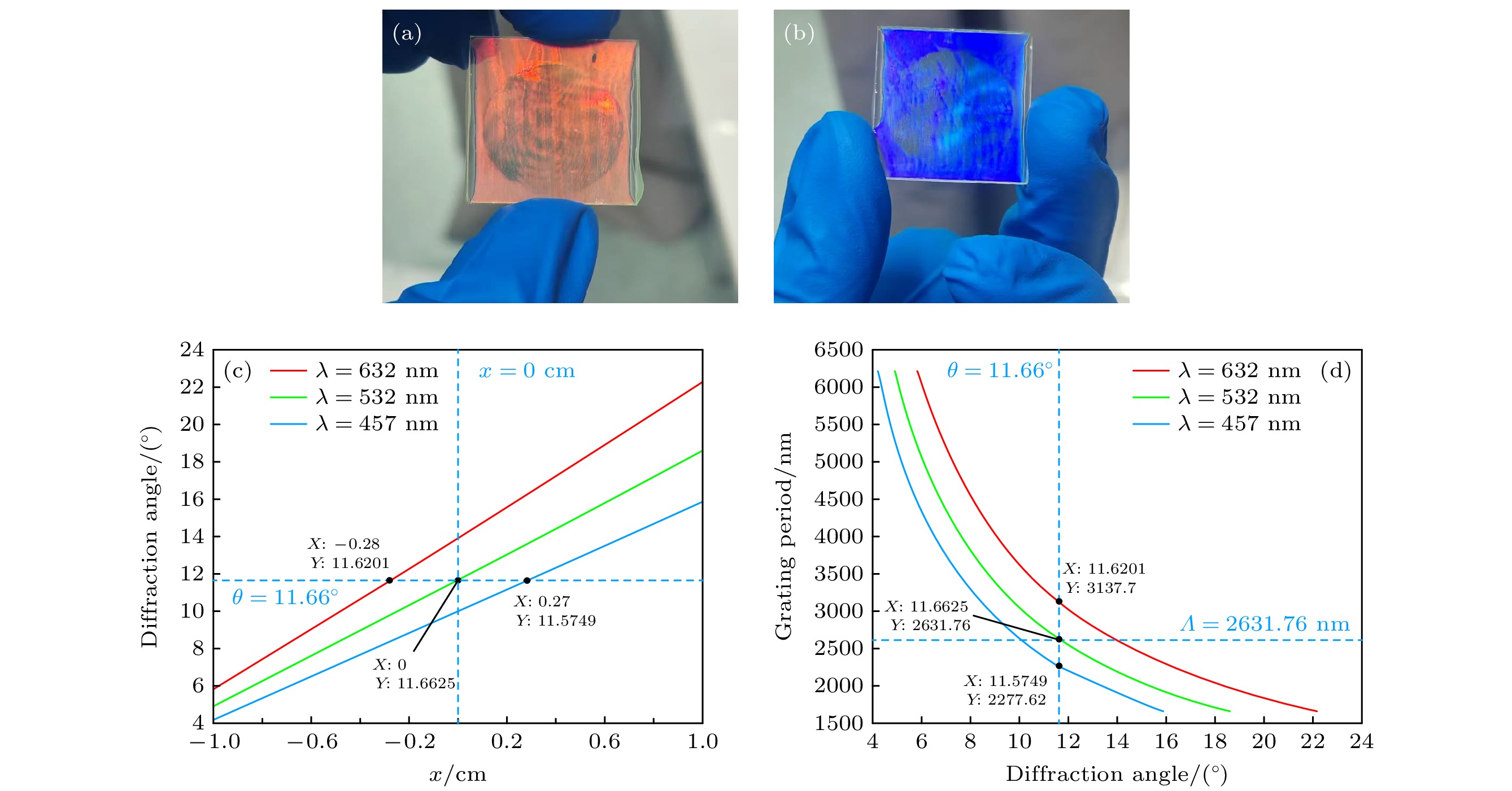 Photo-oriented liquid crystal technology utilizes polarized light illumination to achieve the directional alignment of liquid crystal molecules. This technology can be developed into polarization volume gratings (PVGs), which possess polarization and volume holographic selectivity characteristics, and also have a broad application prospect as an optical coupling element in optical waveguides and for pupil expansion output. This paper reports on the fabrication of a liquid crystal polarization volume holographic cylindrical lens (PVLS) with a beam diameter of 2 cm by using photo-oriented technology combined with a polarization off-axis holographic optical path. During the experiment, the exposure angle can be controlled to achieve the desired grating period variation range, enabling the diffraction angles of red, green, and blue light incident on different grating periods to be the same. The experimental results show that within the grating period variation range from 1721.2 to 5346.5 nm, when the red, the green, and the blue light are incident on grating with periods of 3147 nm, 2649.1 nm, and 2275.6 nm respectively, the measured diffraction angles are all 11.59°, with an error between the actual and theoretical diffraction angles within ±0.5°; under 532-nm right-handed circularly polarized light, the diffraction efficiency for 18 normal incidence reaches 90.6%, and the diffraction efficiency for oblique incidence satisfying the Bragg condition is 84.4%; simultaneously, beam expansion in one-dimensional direction is achieved, preliminarily verifying the feasibility of PVLS application in the field of color waveguides.