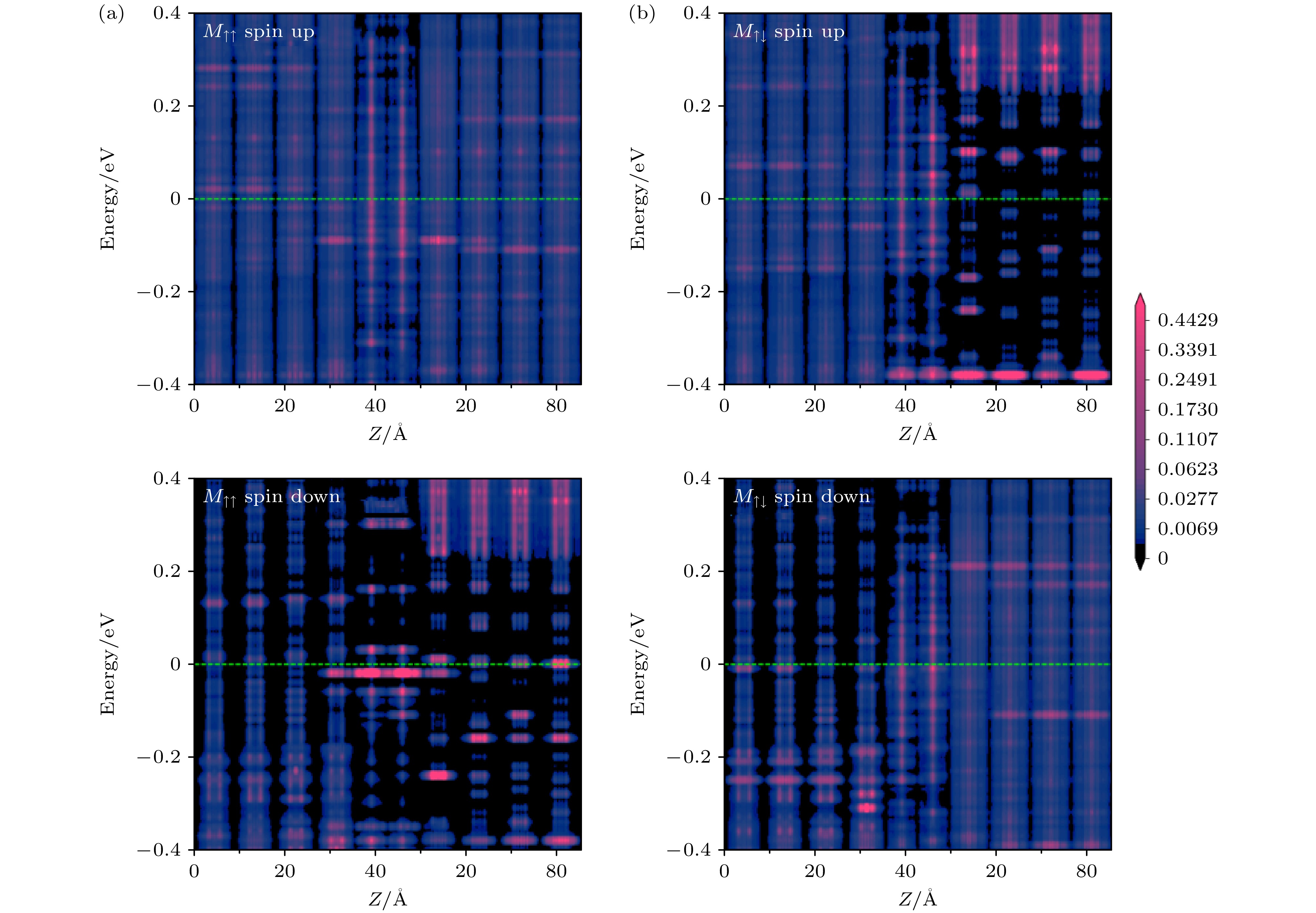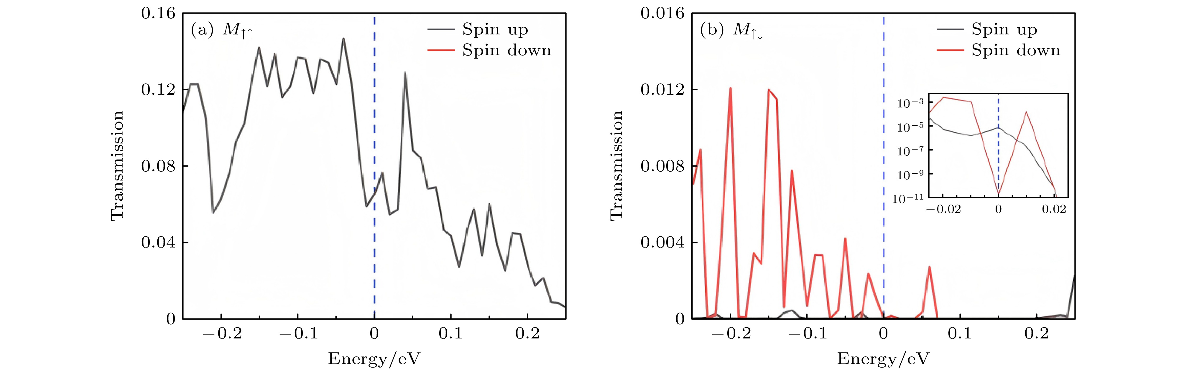 M↑↑ M↑↓ TMR T↑ T↓ $ T_{\rm{tot}} $ $ \eta $/% T↑ T↓ $ T_{\rm{tot}} $ $ \eta $/% P← 0.058 0 0.058 100% 8.05×10–6 0 8.05×10–6 100% 7.27×105% P→ 0.065 0 0.065 100% 6.51×10–6 0 6.51×10–6 100% 1.01×106% TER 12.07% 23.66% -