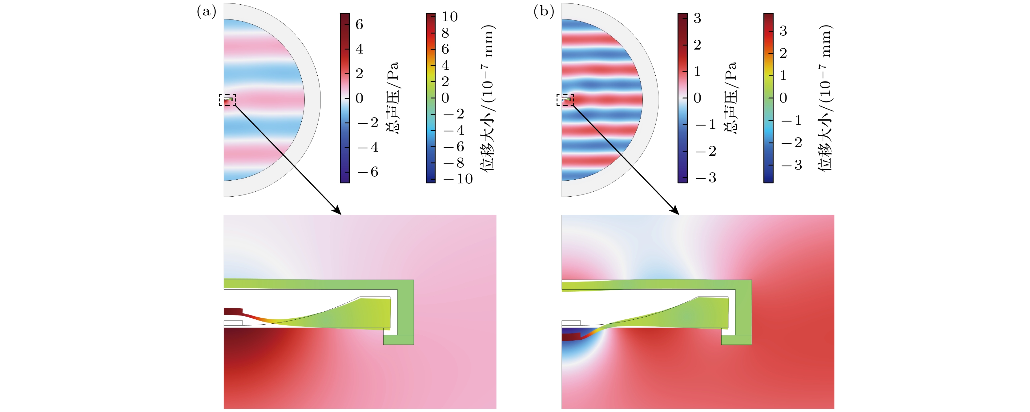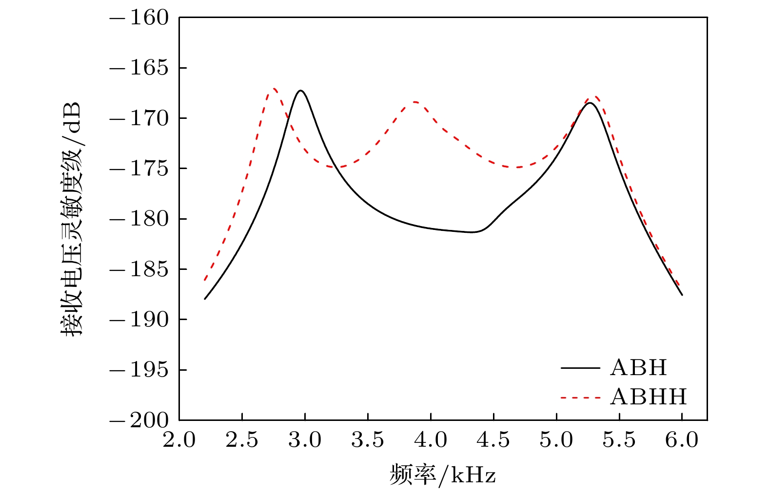 角/(°)1阶 2.95 –167.3 156 2.9 –168.8 120 2阶 5.25 –168.5 99 5.0 –168.6 85 表 3 ABHH水听器的仿真与实测性能对比