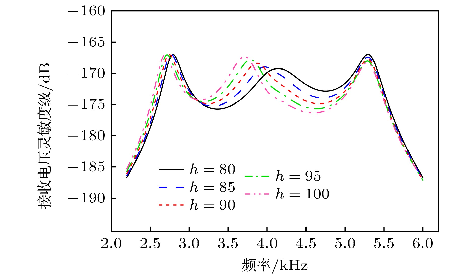 表 1 4种厚度形式的板作为声波接收面的水听器性能对比
