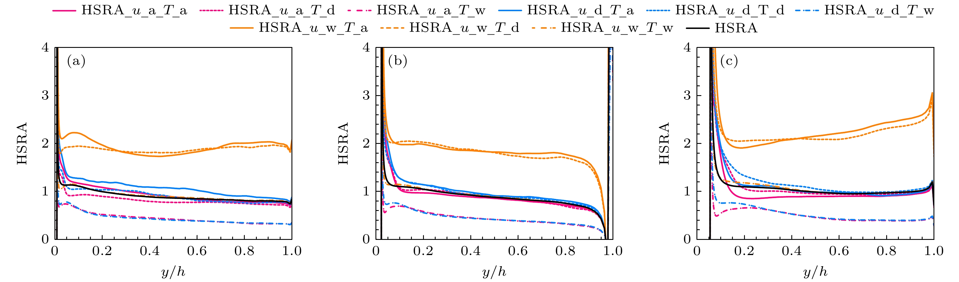 Case ${\text{N, SS}}$ ${\text{N, S}}$ ${\text{N, T}}$ ${\text{P, SS}}$ ${\text{P, S}}$ ${\text{P, T}}$ Total M8 AW 3.22 0.32 6.26 1.88 1.35 5.40 42.11 M8 CW05 3.71 0.13 7.10 1.66 1.27 3.70 38.84 M8 CW02 2.21 0.15 9.61 2.01 0.73 2.70 37.20 表 3 不同速度结构下生成项对壁面热流的贡献占比$ {{{C_{{\text{h, RS}}}}} \mathord{\left/ {\vphantom {{{C_{{\text{h, RS}}}}} {{C_{\text{h}}}}}} \right. } {{C_{\text{h}}}}} $