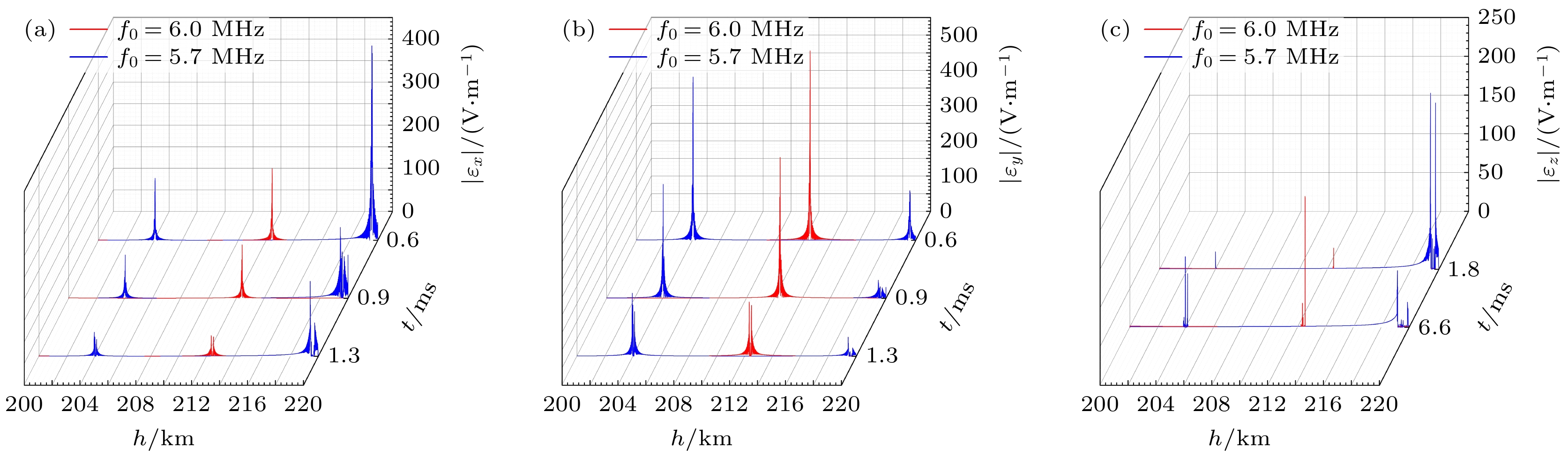 参数名称 参数值 O波频率f0/MHz 6.3 发射机有效辐射功率WERP/MW 554.1 探测波频率fprobe/Hz 10 电场强度E/(V·m–1) 0.2 地磁场磁感应强度Bg/μT 48.59 地磁场倾角θ/(°) 78.2 离子温度Ti/K 1000 表 6 俄罗斯Sura装置电离层加热实验典型参数[33]