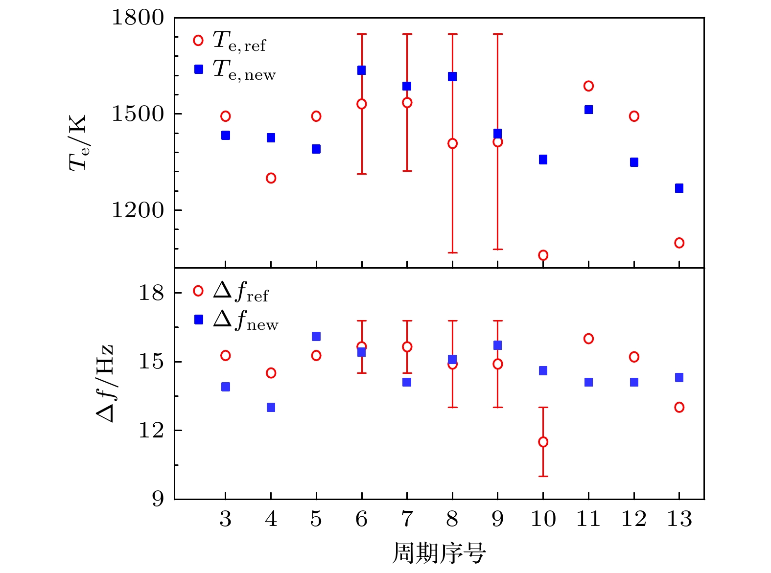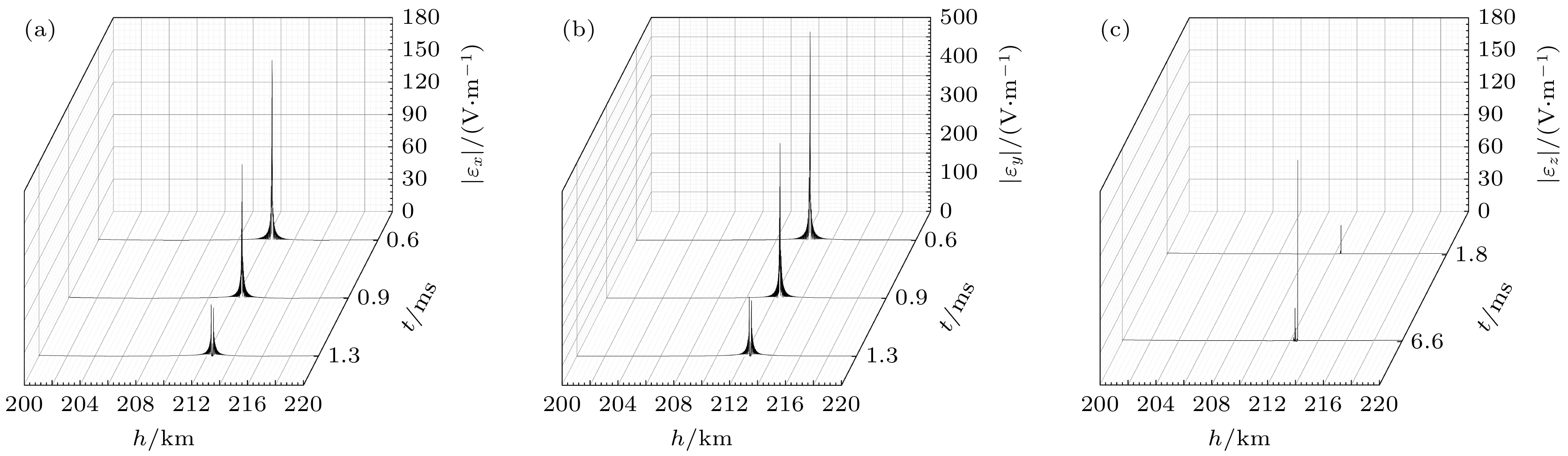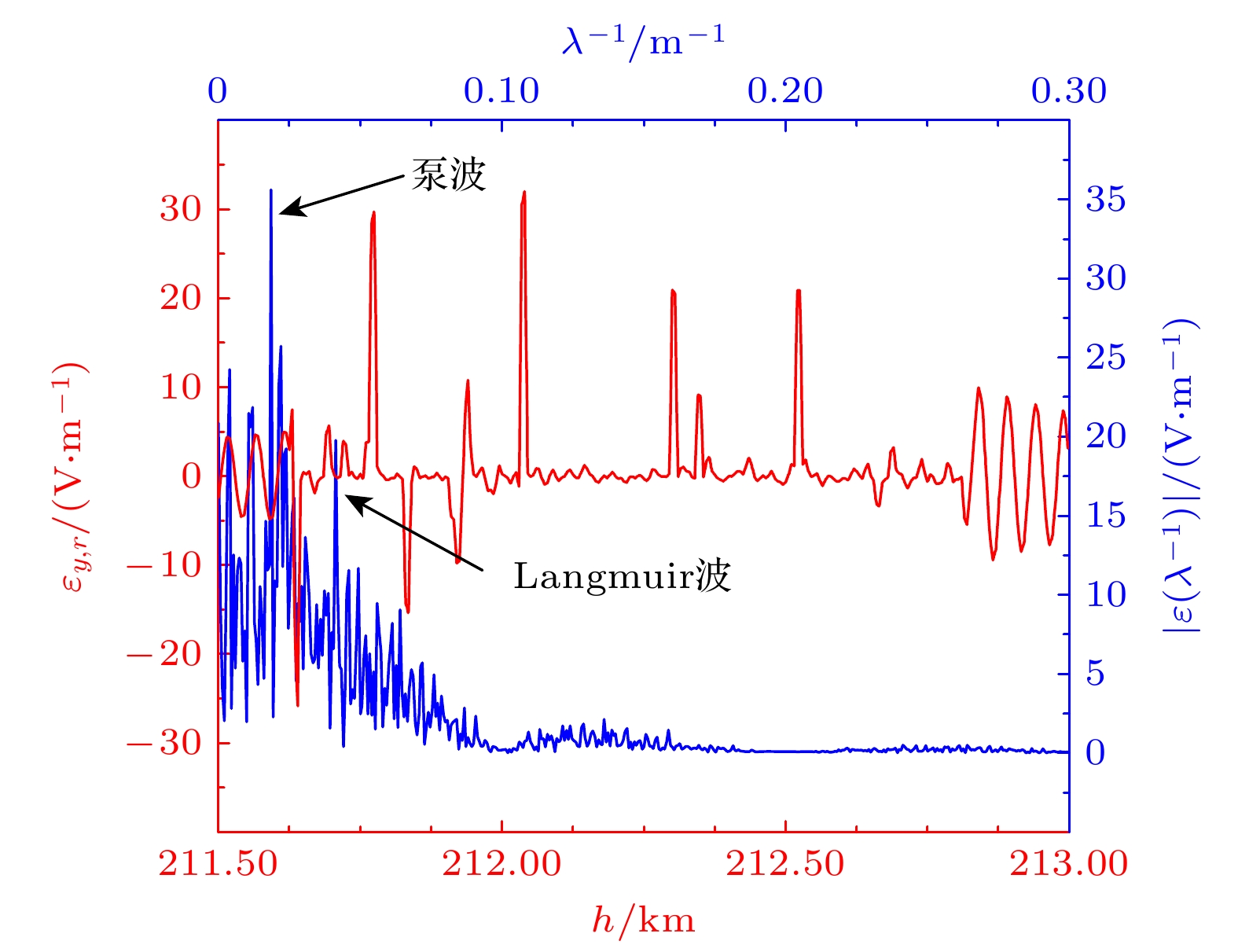 参数名称 参数值 电子温度/K 1535.3—1832.4 电子数密度/m–3 3.72×1011—4.93×1011 地磁场倾角/(°) 72.1 地磁场磁感应强度/T 4.6×10–5 等离子体频率/MHz 5.47—6.30 上混杂频率/MHz 5.63—6.44 下混杂频率/kHz 7.88 -