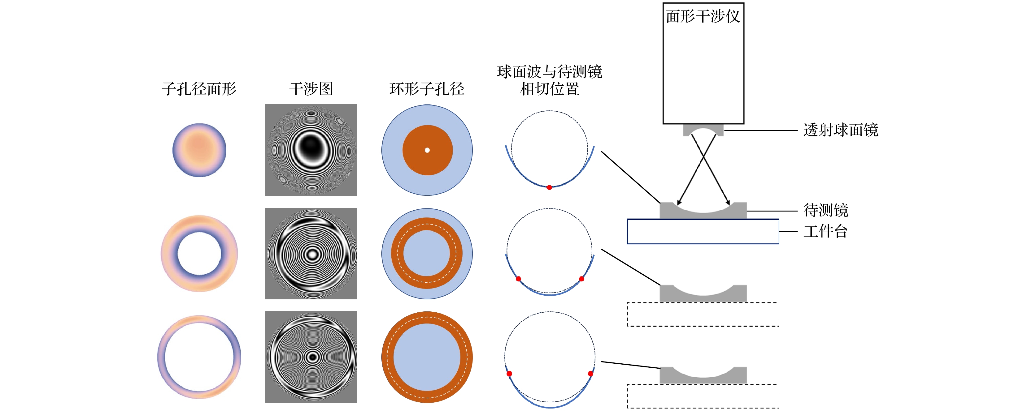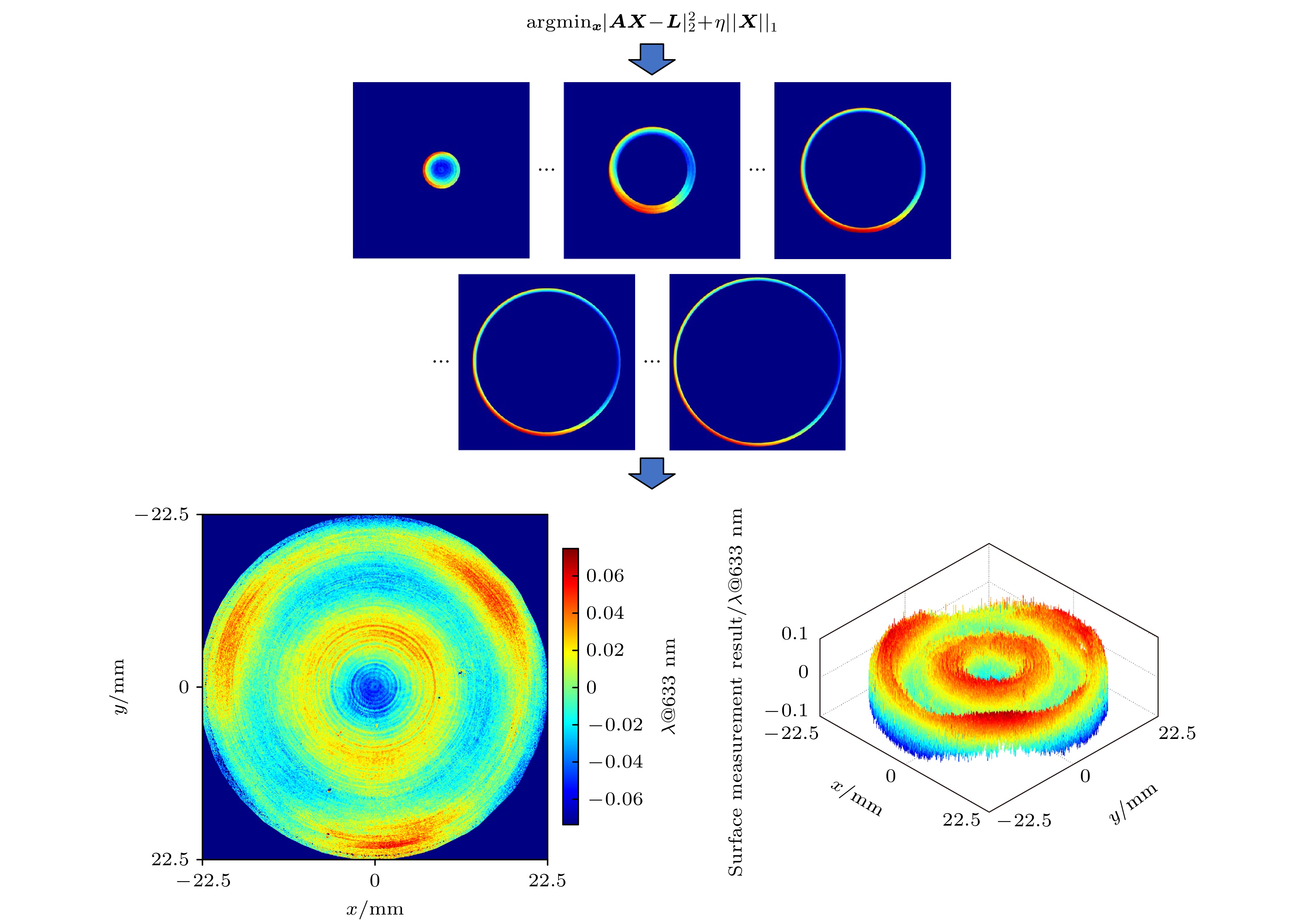 Aspheric optical elements are essential in high-end manufacturing and scientific research. As precision demands increase, the coupling of surface features and measurement errors during high-asphericity and high steepness element measurement based on annular subaperture stitching limits the development of high-precision measurement. The coupling of surface features and measurement errors refers to that for high-steepness aspheric element to be measured, the measurement errors caused by retrace errors correspond to higher-order aberration features, which are likely to be consistent with the surface features, and this coupling makes it impossible to eliminate measurement errors by subtracting Zernike terms during full-aperture surface stitching measurement, because this would lead to the incorrect subtraction of surface features. The traditional overlapping-region based subaperture stitching method encounters two major problems: the error of the first subaperture, which serves as the reference, cannot be decoupled, and the error accumulation caused by a large number of subapertures will seriously affect measurement accuracy, especially when measuring high-steepness aspheric element. To solve the error coupling problem, this work proposes an aspherical measurement error decoupling technology based on global optimal fitting of full-aperture surface shape features and local measurement errors. This method takes advantage of the continuity of the full-aperture surface shape features of the aspheric surface of all subapertures and the discontinuity of the measurement errors of each subaperture. The method uses full-aperture circular and subaperture annular Zernike polynomials to build a global optimization model, where the former represents surface features and the latter describes subaperture errors; in addition, an L1 regularization term is added. By integrating these polynomials to create a global optimization function and solving for Zernike coefficients, the full-aperture surface shape features and the measurement errors of each subaperture can be solved separately (corresponding to the coefficients of the Zernike polynomials), and error decoupling and enhanced accuracy can be achieved. Furthermore, processing errors can globally avoid error accumulation in the traditional method and reduce the number of subapertures for higher measurement efficiency. Simulation and experimental validations are demonstrated in this paper. In the simulation experiment, the full-aperture surface features of the aspheric surface to be measured and the measurement errors of each subaperture are generated separately by using Zernike polynomials and the method proposed in this paper. The results are shown below. The full-aperture surface shape features and the subaperture measurement errors are solved separately; the correct surface measurement results after measurement error decoupling are obtained; the calculated results are compared with the true values of the Zernike coefficients of the surface shape features and measurement errors used in the simulation to verify the accuracy. The simulation shows effective fitting of Zernike polynomial coefficients and error decoupling. In the experimental verification, an aspheric measurement system is built, and a high-steepness aspheric element is used as the measurement target (a convex aspheric surface, a rotationally symmetric quadratic surface with a diameter of 45 mm, a vertex curvature radius of 150 mm, a conic constant of –48, an asphericity of 63.2 μm, and a maximum asphericity gradient of 19.12 μm/mm). The method proposed in this work and the traditional methods are compared with each other, and a profilometer is used to obtain the measurement results as reference result. Experiments show that the error decoupling in measurement of high-asphericity and high steepness elements is achieved with the proposed method, and the PVr accuracy of measurement is 0.0976λ@633 nm, improved by nearly 30% compared with traditional methods. The proposed method provides a practical solution for high-precision measurement of high-asphericity and high steep components in solving the problem of measurement error coupling. Future research will further explore the application value of the proposed method in aspheric processing, especially in achieving performance optimization in various specific measurement scenarios. -
