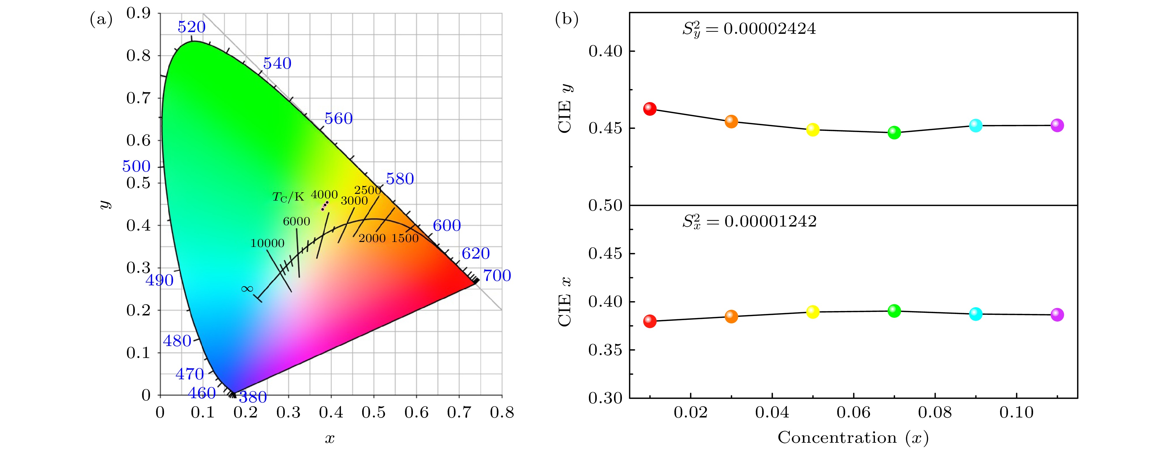表 1 CNYP: xDy3+的色度坐标和CCT色温