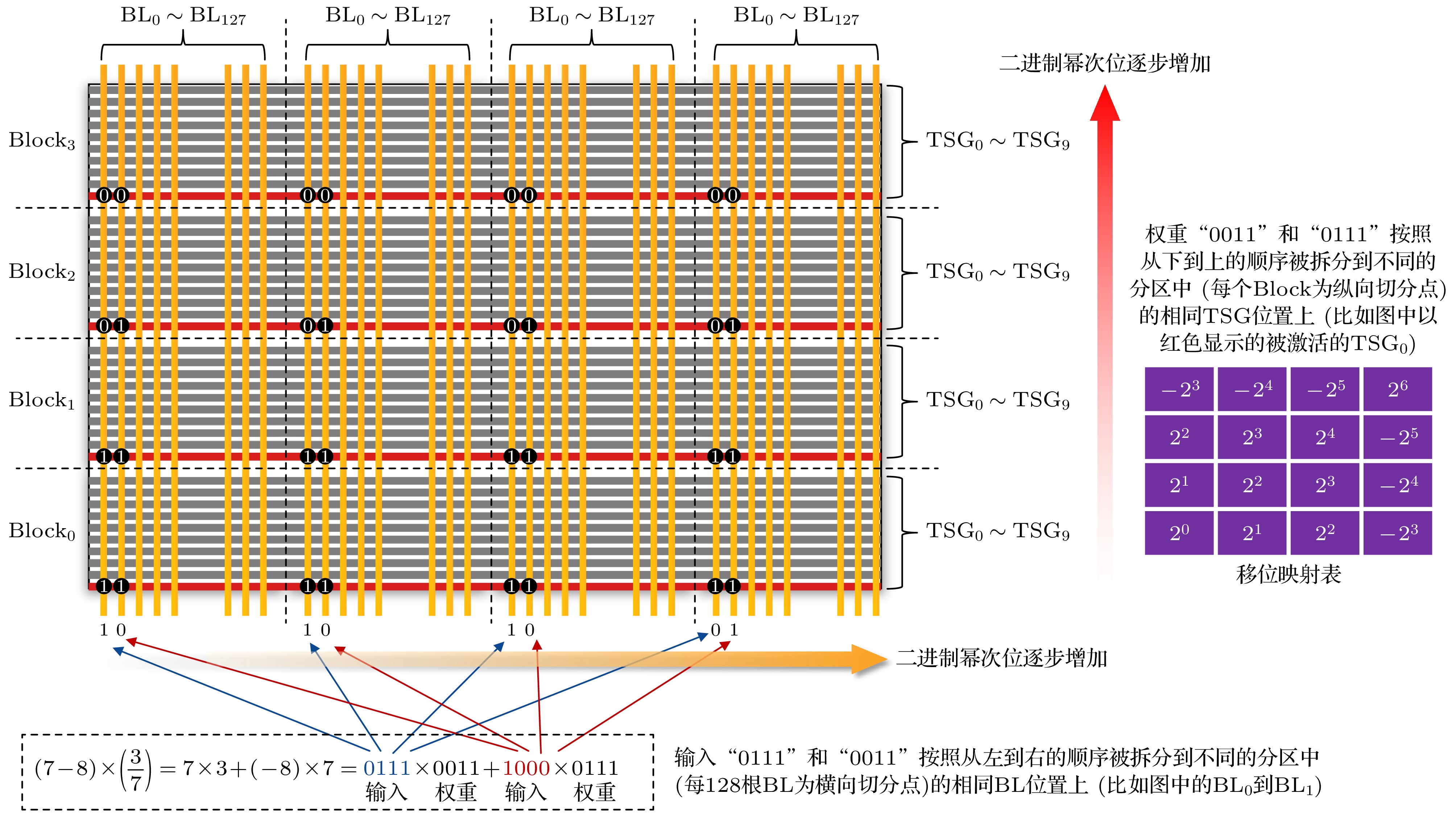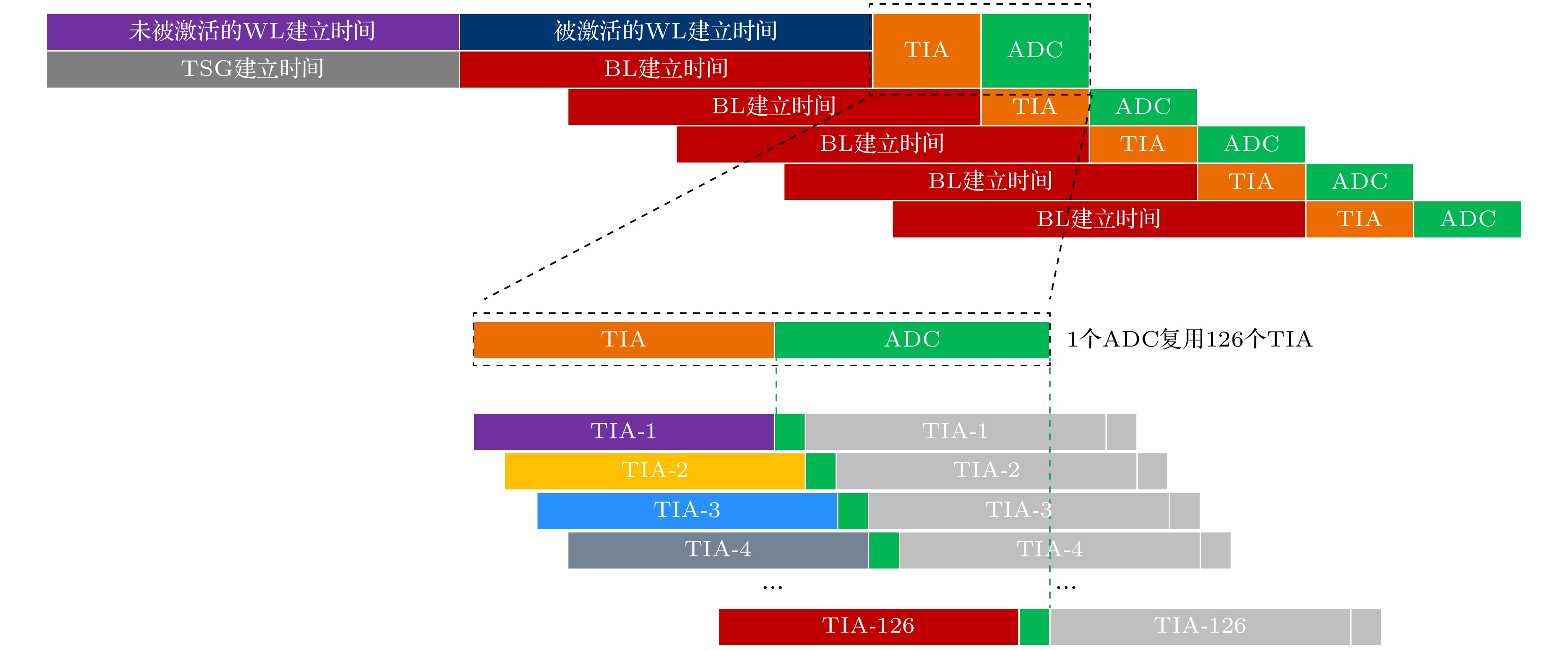 参数名 功能 参数名 功能 Quantization bits 量化数 Block setup time 时间常数 Current mean /Scale 器件开态电流分布均值/标准差 WL switch time 时间常数 Blocks/Operation 单次计算操作的Block数量 TSG switch time 时间常数 Max current sum 单次计算求和的电流数 BL switch time 时间常数 Symmetric mode 是否采用对称量化 TIA conversion time 时间常数 ADC multiplexing factor ADC复用数 ADC conversion time 时间常数 X path current 横向通道电流 Planes/Die 硬件常数 Y Path current 纵向通道电流 Layers/Die 硬件常数 Vcc 电压 Blocks/Plane 硬件常数 Background current 背景电流 TSGs/Block 硬件常数 Num of TIAs TIA数量 Bit lines/Plane 硬件常数 表 2 3D NAND-SS 硬件参数