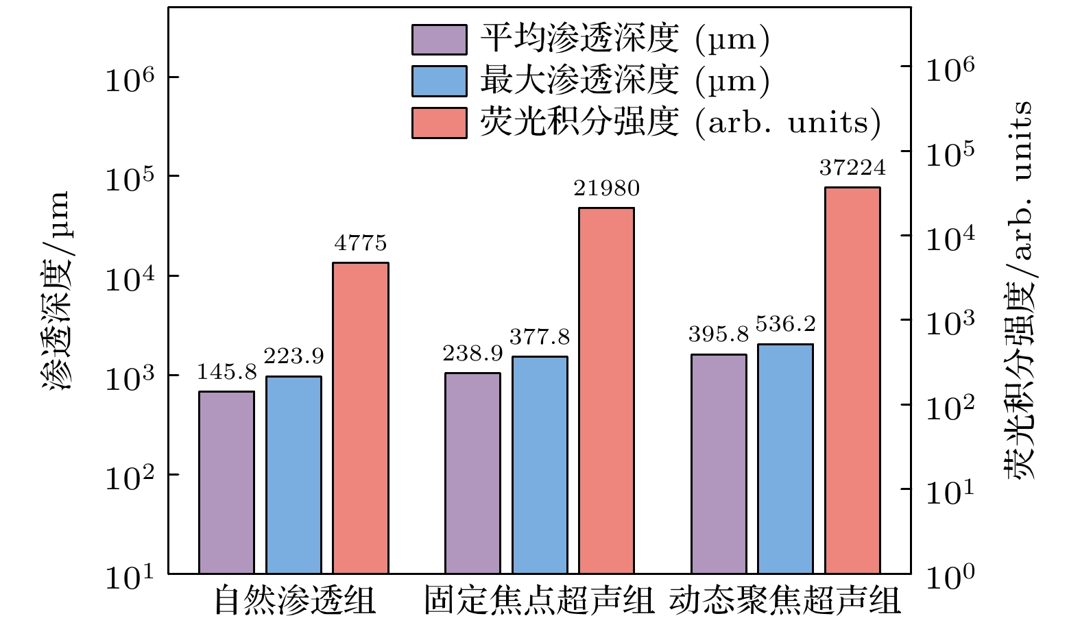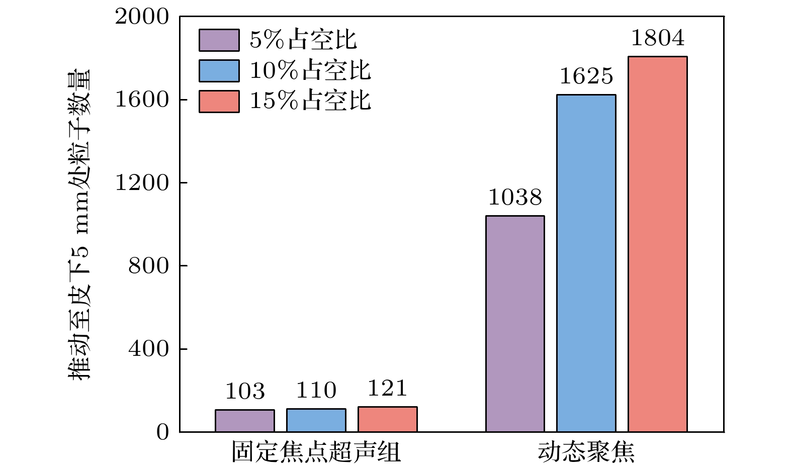 Ultrasound-assisted transdermal drug delivery (UTDD) is a promising non-invasive strategy to overcome the skin barrier. The traditional fixed-focus ultrasound approaches encounter the problems such as limited penetration depth, localized accumulation, and risk of thermal damage. To address these challenges, we propose a phased-array based dynamic focusing strategy, in which the acoustic focus is shifted sequentially along the depth direction. This approach aims to construct a continuous longitudinal acoustic radiation pathway that can sustain particle migration into deeper skin layers. In vivo experiments are conducted with FITC-labeled nanoparticles on rat dorsal skin under three conditions: natural permeation, fixed focus (~0.5 mm beneath the skin), and dynamic focusing (scanned from the surface to 1 mm). After 10-min ultrasound, fluorescence microscopy reveals that fixed focus enhances penetration compared with natural permeation, while dynamic focusing further improves delivery, increasing average depth by 65.7%, maximum depth by 41.2%, and fluorescence intensity by 69.3%. Dynamic focusing also produces a more uniform and continuous deposition band, which is unlike the localized accumulation seen with fixed focus. To elucidate the underlying mechanisms, a two-dimensional finite element model is established in COMSOL Multiphysics. The simulation results reveal that this “multi-focus relay” effect provides a continuous driving force pathway, enabling particles to follow the shifting focal positions. Trajectory analysis confirms that the number of particles reaching deeper layers (up to 5 mm) increases by nearly 14 times under dynamic focusing compared with that in the case of fixed focus, while the width of the lateral distribution extends by 46.1%. In conclusion, both experimental and simulation results demonstrate that phased-array dynamic focusing significantly enhances penetration depth, migration efficiency, and distribution uniformity of nanoparticles in UTDD. By constructing a continuous acoustic radiation pathway in the depth dimension, this approach improves delivery efficiency while mitigating local energy accumulation, providing a safer and more effective strategy for ultrasound-mediated transdermal therapy.