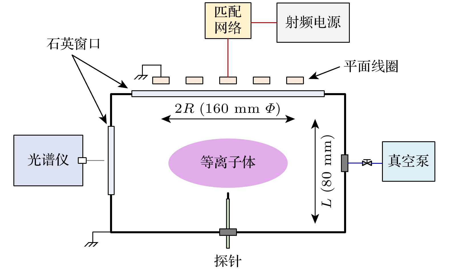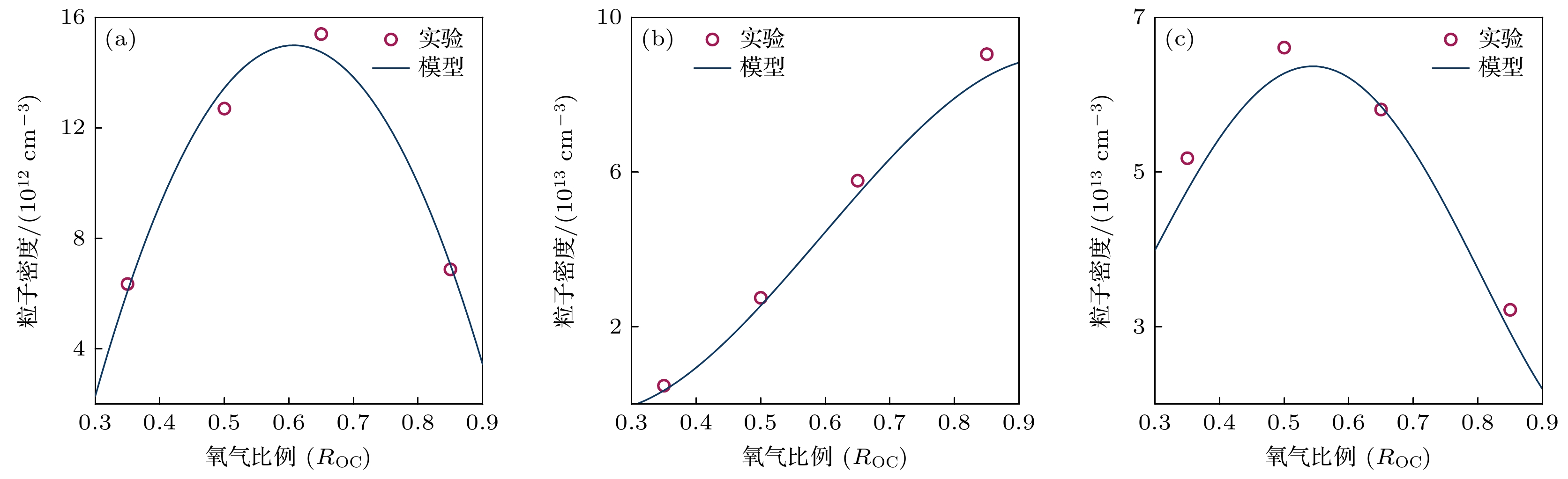 $ \sigma ({E_{\text{e}}}) $: 激发截面; $ f({E_{\text{e}}}) $: 电子能量分布E4 $ {R_{\text{S}}} = {K_{\text{S}}}{n_{\text{s}}} $ $ {n_{\text{s}}} $: 表面损失物质密度 E5 $ K_S^{\text{n}} = {\left[ {\dfrac{{{\varLambda ^2}}}{{{D_{\text{n}}}}} + \dfrac{{2 V(2 - \gamma )}}{{S{u_{\text{n}}}\gamma }}} \right]^{ - 1}} $ $ K_S^{\text{n}} $: 中性粒子表面损失系数; $ {D_{\text{n}}} $: 扩散系数; $ \gamma $: 表面黏附系数;