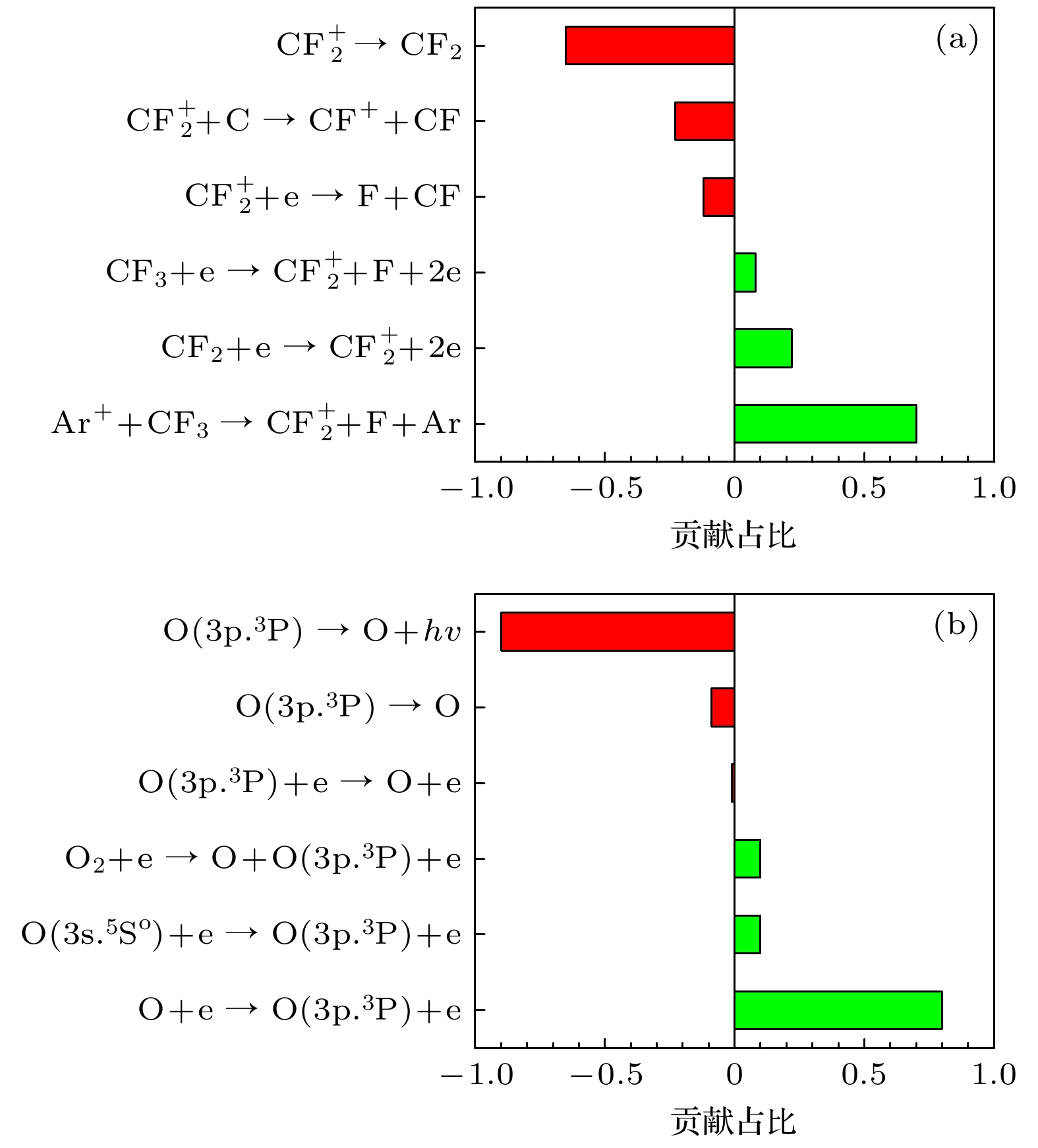 类别 物种 离子 $ \mathrm{CF}_3^+ $, ${\mathrm{CF}}_2^+ $, CF+, Ar+ 自由基 CF3, CF2, CF, COF, F, C, O 中性产物 C2F4, CF4, F2, COF2, CO, CO2 原料气体 C4F8, O2, Ar 表 3 激发态物种集