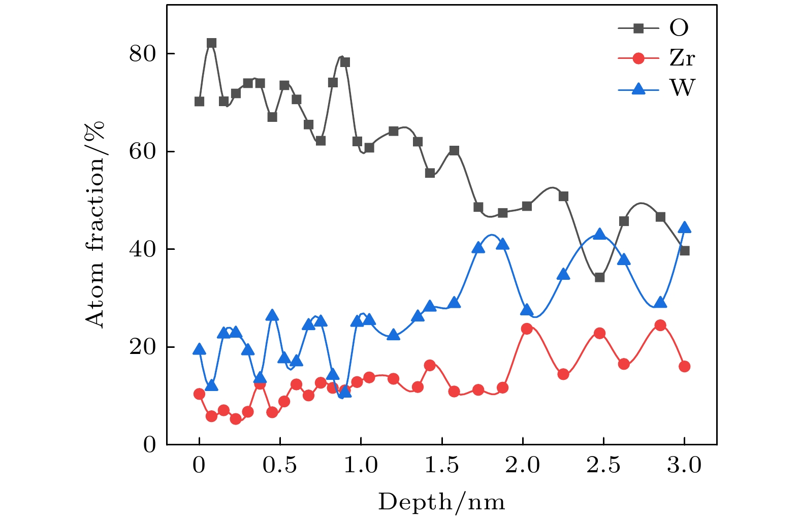 序号 O atomic percent/% Zr atomic percent/% W atomic percent/% 1 70.27 10.39 19.34 2 65.04 4.54 30.42 3 33.13 2.2 64.67 4 43.31 2.15 54.54 5 47.92 2.51 49.58 -