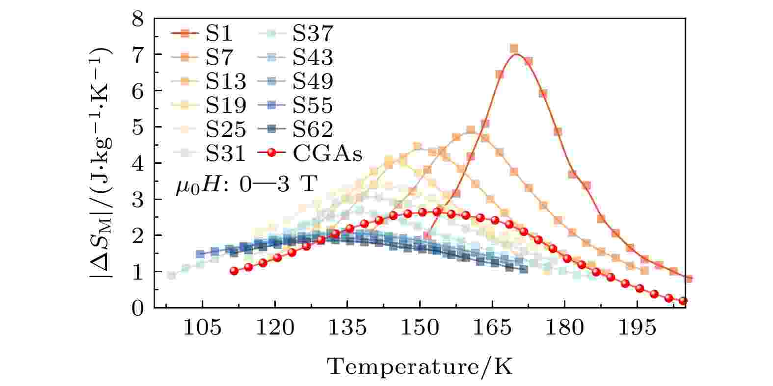 Magnetic refrigeration technology, featuring environmental friendliness, energy efficiency and high performance, is recognized as a next-generation refrigeration technology with the potential to replace gas compression refrigeration technology. However, current magnetic refrigeration materials typically exhibit an excessively narrow phase transition temperature range (≤10 K), thus necessitating the stacking of materials with multiple compositions to meet the practical refrigeration temperature span. In this study, the typical La(Fe, Si)13-based magnetic refrigeration material is selected, and an innovative gradient laser powder bed fusion technology is adopted to obtain 3D-print La0.70Ce0.30Fe11.65–xMnxSi1.35 alloys with horizontal compositional gradients (where the Mn content varies continuously from 0 to 0.64). Systematic characterization of their microstructures, magnetic properties, and magnetocaloric effects indicates that this technology enables a controllable gradient distribution of compositions along the powder bed plane and high-throughput preparation, thereby achieving a continuous variation of the Curie temperature of the gradient alloy over a wide temperature range from 134 K to 174 K. With the increase of Mn content, the phase transition of the alloy gradually changes from a weak first-order phase transition to a second-order phase transition, and the peak shape of the magnetic entropy change curve shifts from “sharp and high” to “broad and flat”. The full width at half maximum of the temperature range is extended to 83.3 K, allowing the gradient alloy to maintain high refrigeration capacity (RC ~130 J/kg, 3 T) at all time. This study breaks through the bottlenecks of traditional material preparation and performance via gradient additive manufacturing, providing a novel technical pathway for achieving high-throughput preparation and performance optimization of magnetic refrigeration materials.